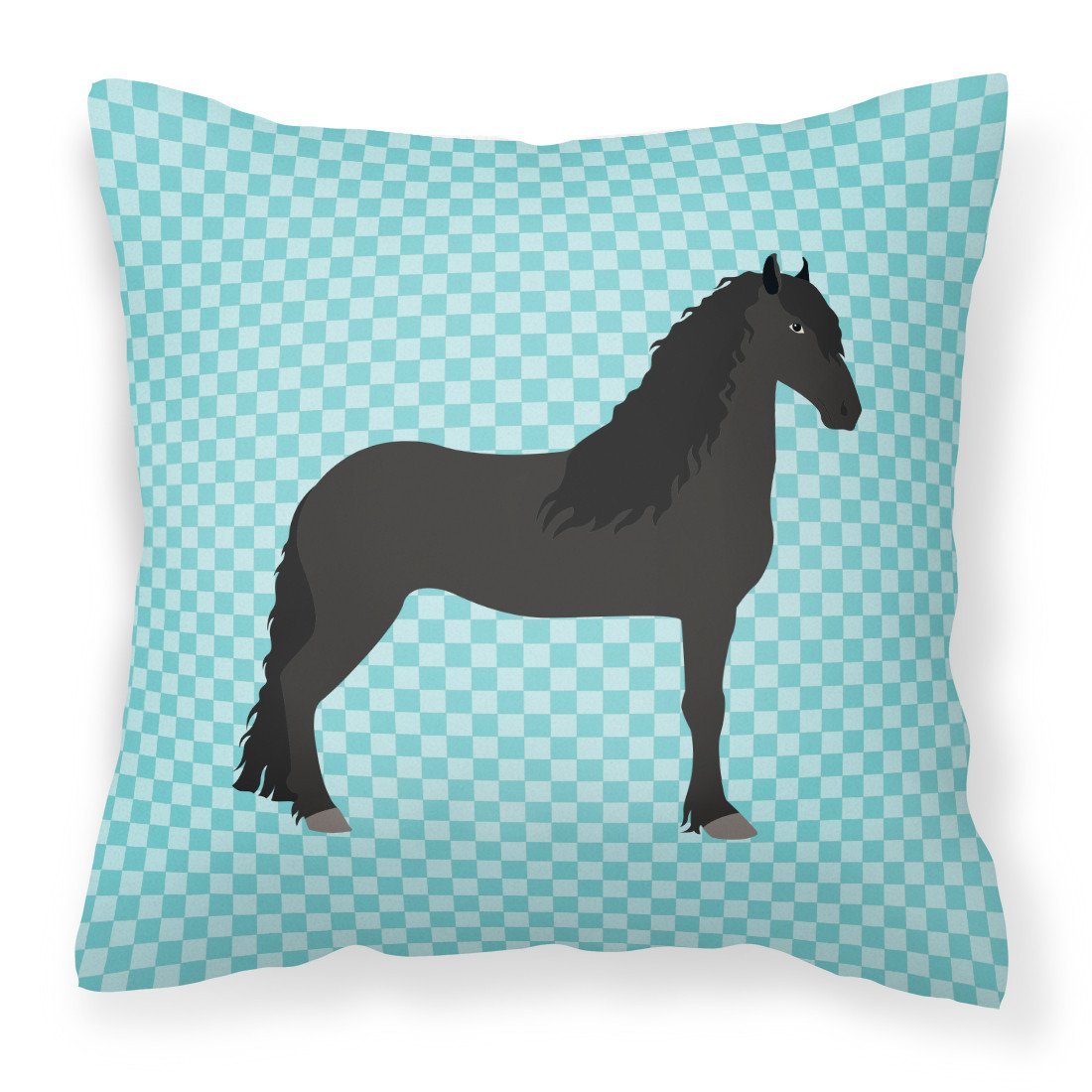 Decorate your space with our Friesian Horse artwork on a Pillow. Revitalize your outdoor or indoor living space with Caroline's Treasures 18x18 Fabric Decorative Pillow. With a generously sized dimension of approximately 18 inches by 18 inches, this pillow makes a comfortable and aesthetic addition to any seating area. Made from a unique, water-resistant material developed by Caroline's Treasures, the pillow sham is 100% polyester fabric that's durable and ready to weather any condition. Its vibrant, full-color artwork will not fade over time as it is dyed with color-fast dyes. Whether you place it on your patio furniture, porch, veranda, or indoor couch, its soft canvas fabric ensures a cozy experience. The pillow is handcrafted in the United States, featuring a sham created from three pieces of fabric and a polyester insert for enduring shape and overstuffed comfort. Despite being robustly built to endure the outdoors, it is as soft and snug as your favorite indoor cushions. Please note, as all our pillows are handmade, sizes may vary slightly, adding to the charm of this unique decorative item.