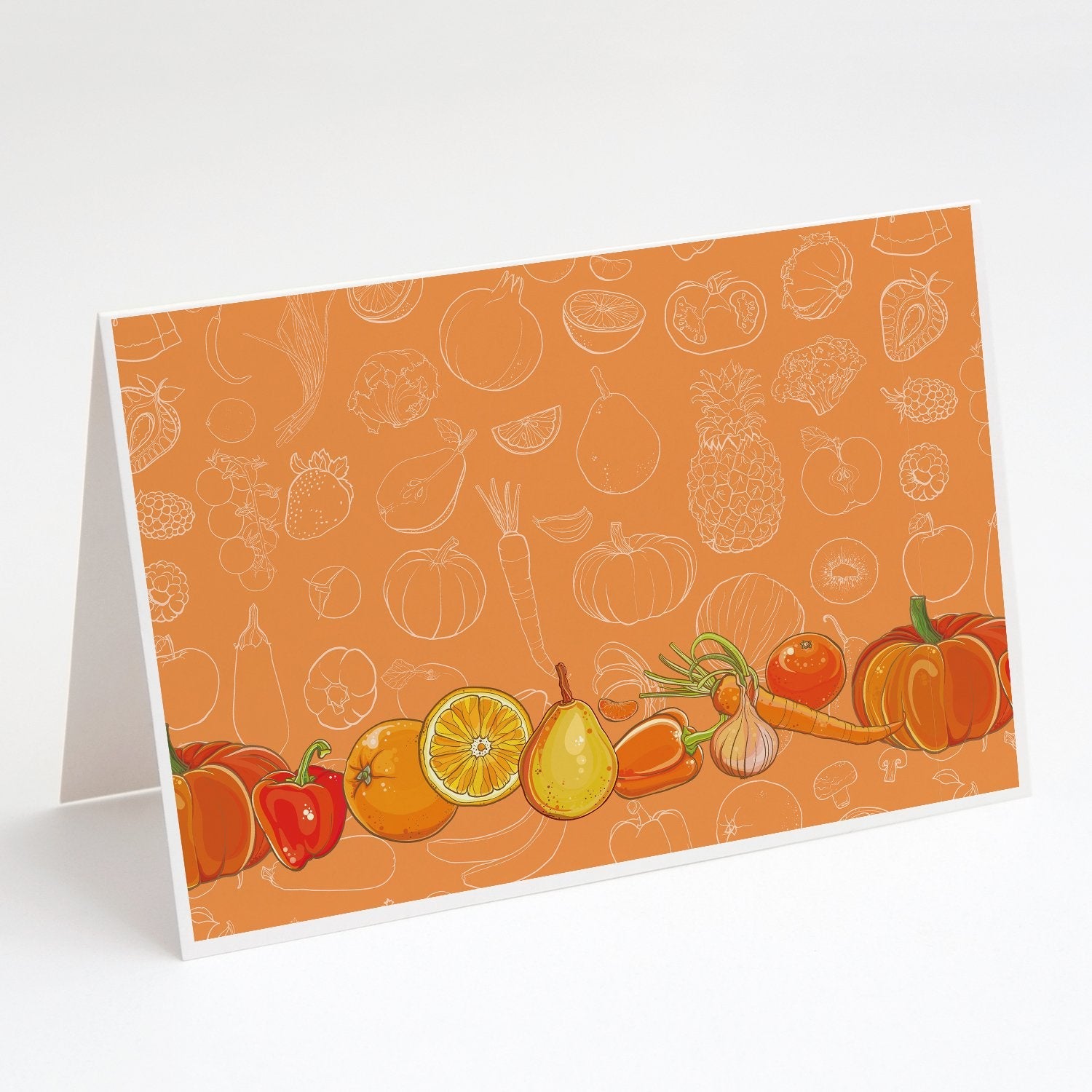 Fruits and Vegetables in Orange Greeting Cards -  Blank Note Cards – 8-Pack of Artist-Designed Cards with Envelopes