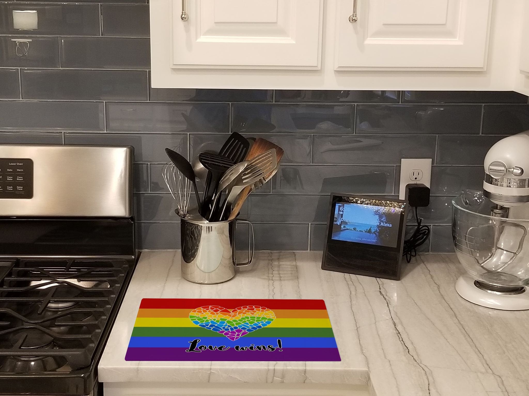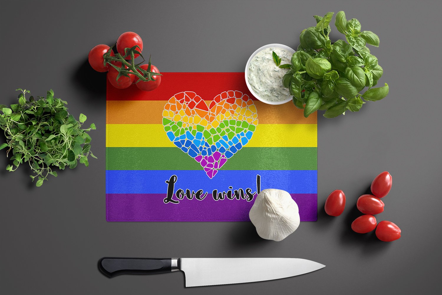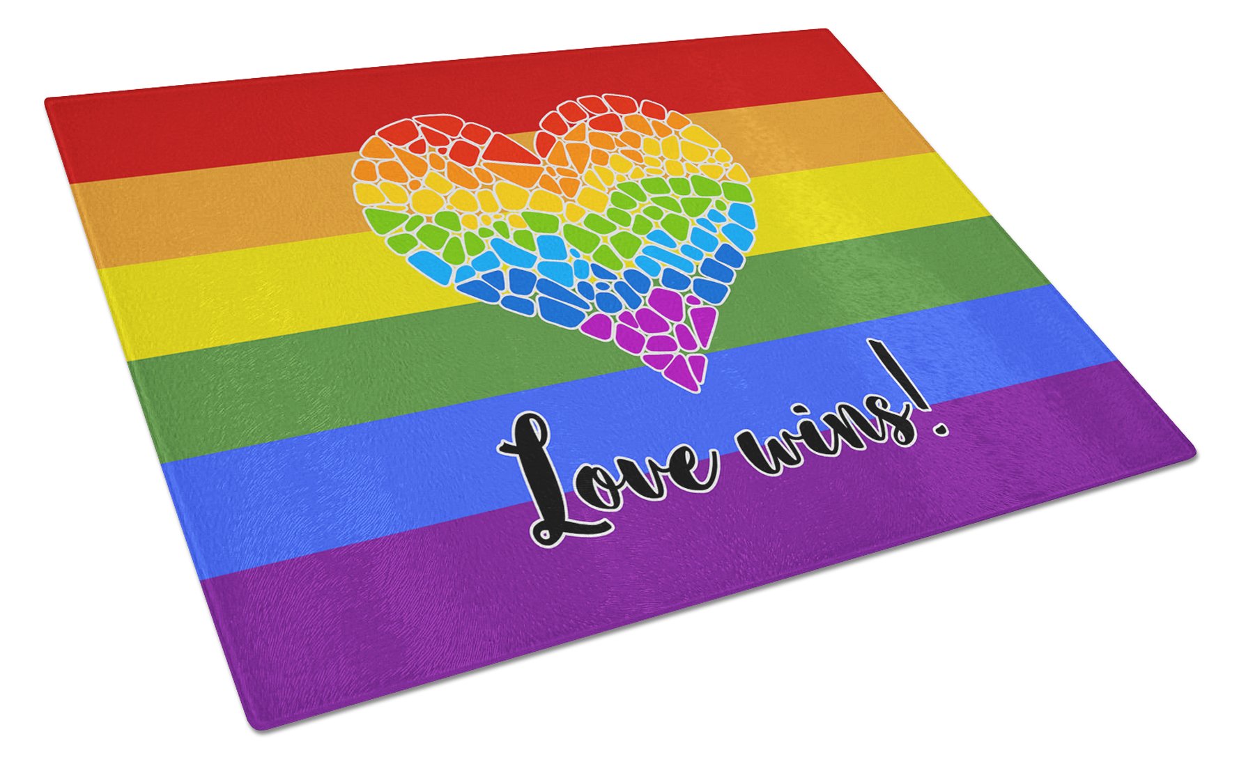 Gay Pride Love Wins Mosaic Heart Glass Cutting Boards – Durable, Decorative Kitchen Art Large