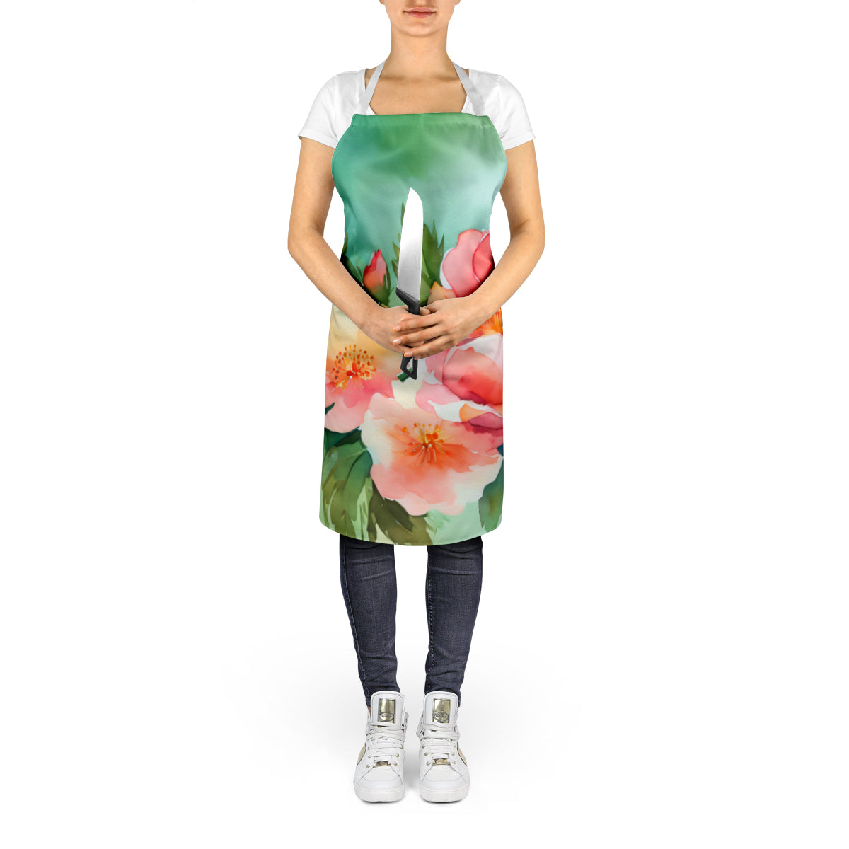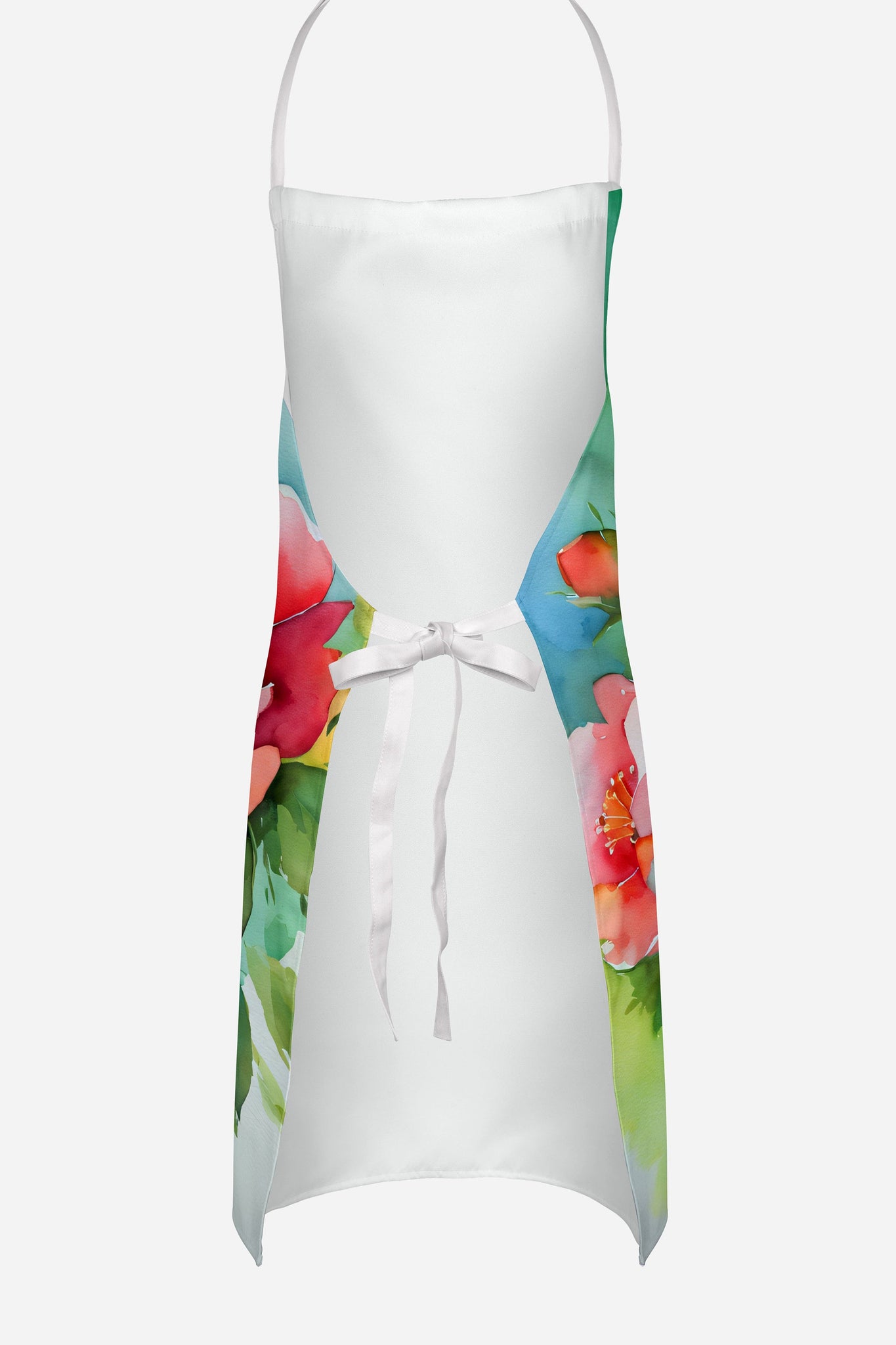 Decorate your space with our Georgia Cherokee Rose artwork on a Apron. Elevate your cooking, baking, and grilling experiences with our versatile Kitchen or BBQ Apron. This Bib Style apron isn't just limited to culinary activities - it also serves as an excellent baking apron, artist apron, server apron, gardening apron, or even a dog grooming apron. The apron showcases vibrant full-color artwork contributed by one of our talented artists, bringing a dash of style to your daily tasks. With dimensions of approximately 27"W x 30"H, it provides ample coverage to protect your clothing from spills and splashes. Our apron is meticulously crafted from 100% Ultra Spun Polyester, known for its durability and lightweight nature. The apron comes with white tie straps, ensuring a comfortable and adjustable fit for all. It's a perfect choice for kitchen apron enthusiasts, whether you are a woman or a man. Designed for easy maintenance, this apron is fully machine washable. The quick-drying polyester material actively reduces staining, keeping your apron looking fresh and new for longer. Our beautifully designed apron isn't just a functional kitchen accessory - it's a fashion statement in the culinary world!