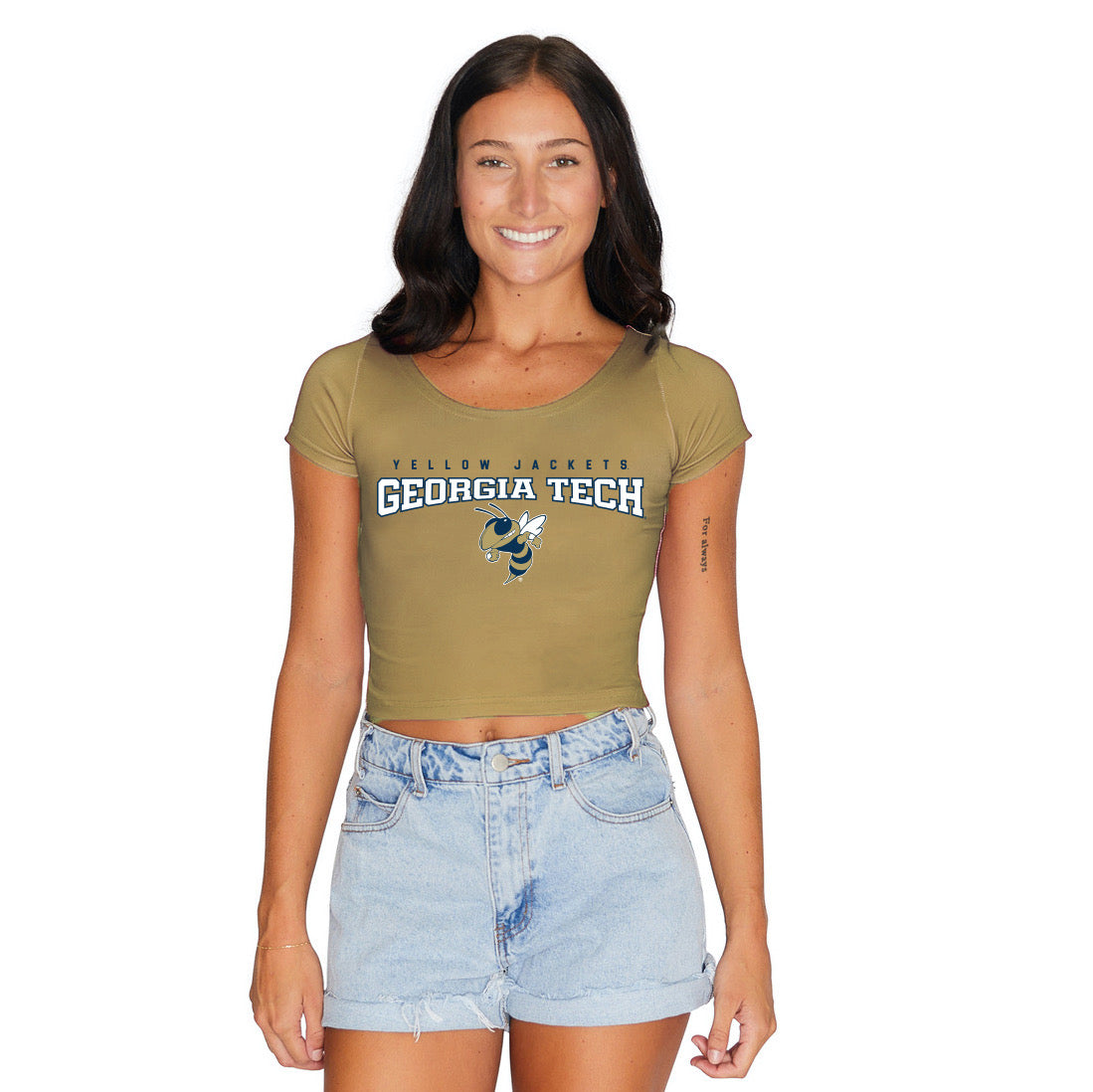 This super flattering Georgia Tech Cropped and Fitted Tee is perfect for college game day paired with our Black Biker Shorts! Our GT Babydoll Tee's stretchy fabric makes it the perfect option for all body types. Stretchy and soft, you'll want to rock this top every day! Go Yellow Jackets!