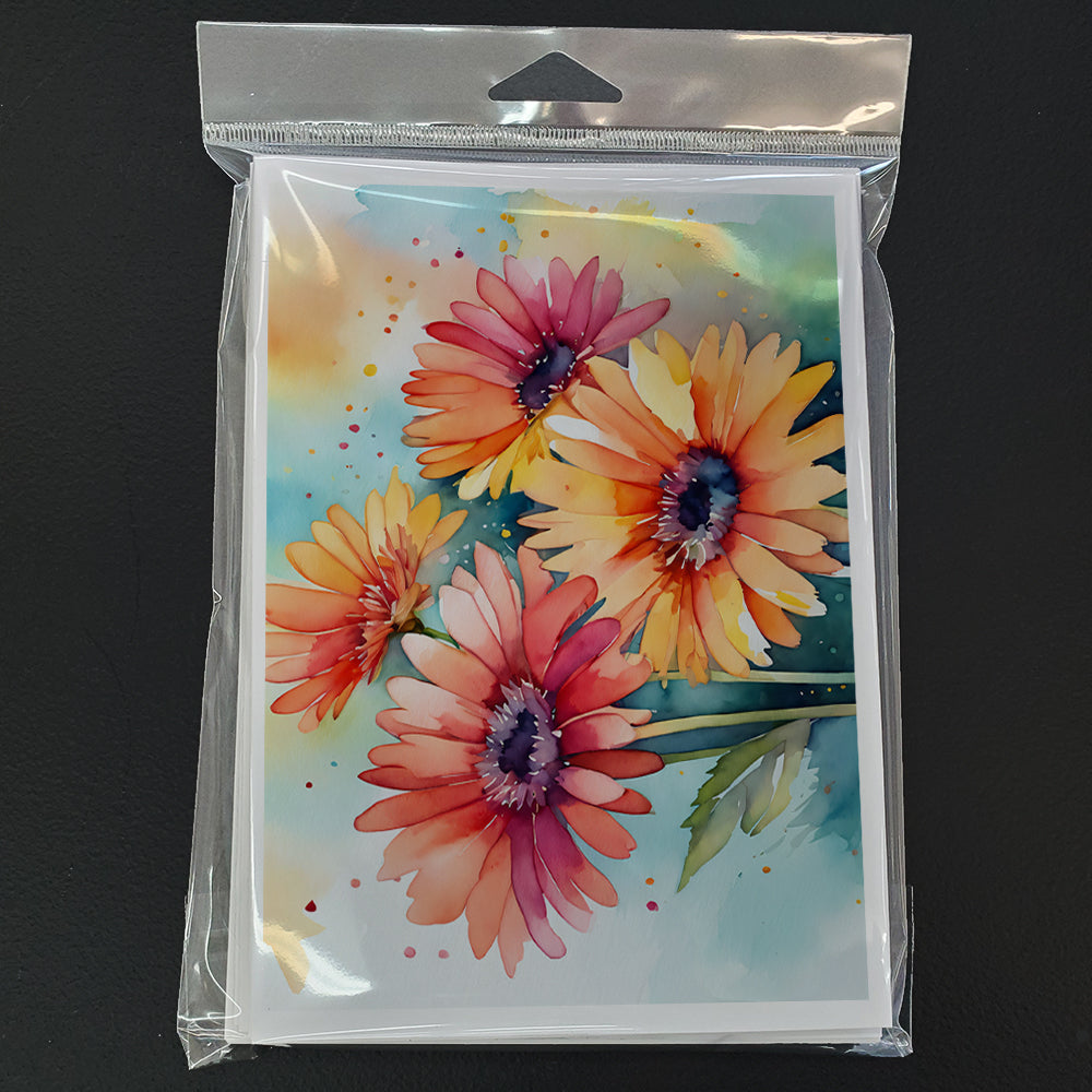 Decorate your space with our Gerbera Daisies artwork on a . Celebrate special moments with Caroline's Treasures Printed Greeting Card Pack. This pack includes eight beautifully folded 5x7 cards, accompanied by eight matching white envelopes. With blank interiors, these cards provide ample space for your personalized messages and heartfelt holiday greetings. Each card features captivating full-color artwork, meticulously printed in our facility on high-quality 80 lb cover stock or 216 GSM. The super smooth finish of the white cards enhances the visual impact of the artwork, creating a truly stunning presentation. Designed by our talented in-house artists or licensed artists, the artwork on these cards showcases their creativity and attention to detail. From vibrant illustrations to captivating designs, each card tells its own unique story. Whether it's for birthdays, anniversaries, holidays, or any special occasion, Caroline's Treasures Greeting Card Pack is the perfect way to convey your heartfelt sentiments. Share joy, love, and warm wishes with these exquisite cards and make every moment unforgettable.