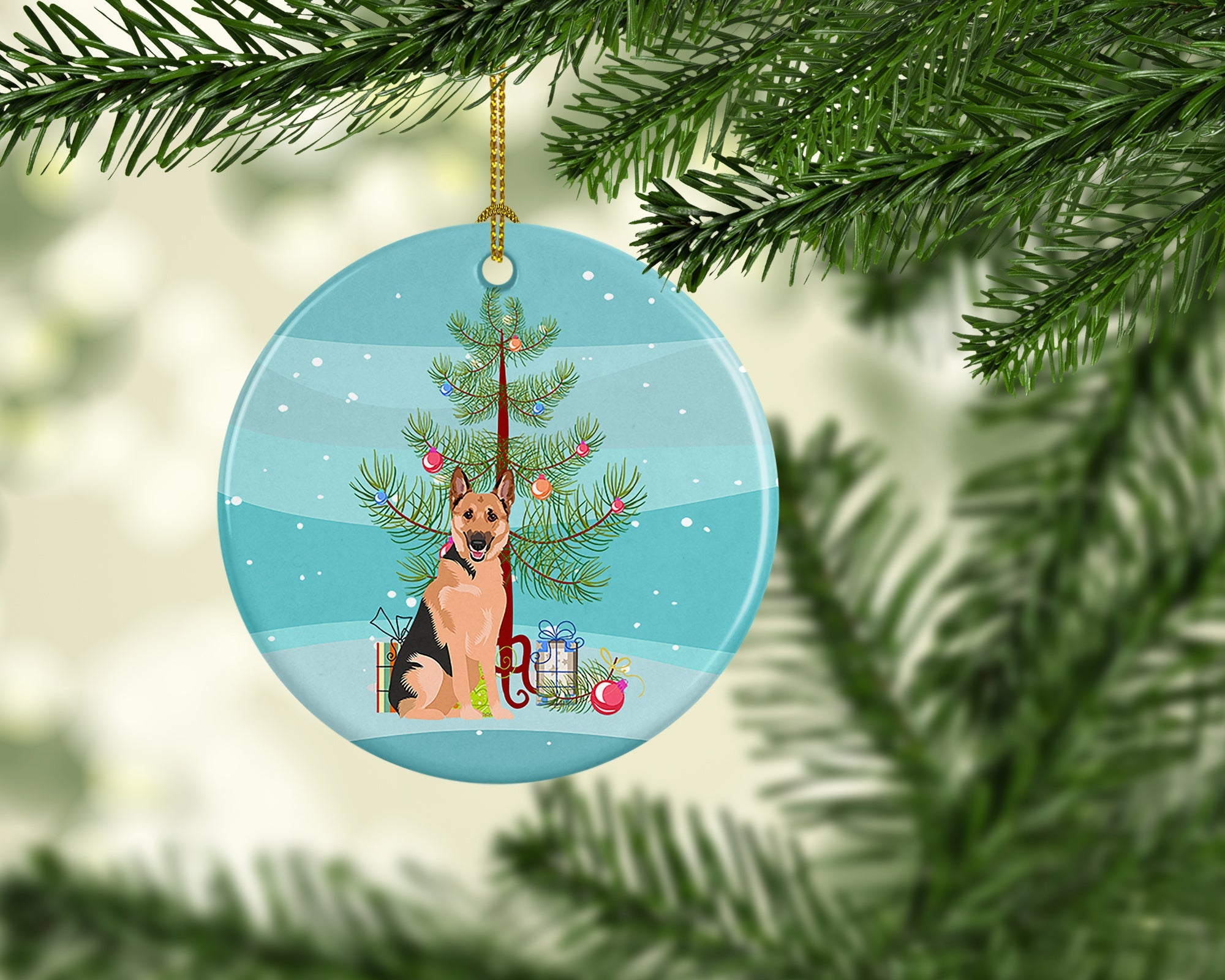 Ceramic Ornament featuring breed specific German Shepherd artwork. Celebrate Christmas with this Christmas Ornament. Add a touch of personalized charm to your Christmas tree this holiday season with our Ceramic Ornament. Measuring 2.8125 inches in diameter, this round porcelain ornament beautifully reflects your festive lights, enhancing your holiday decor. The gloss surface sets off the vibrant, full-color artwork contributed by one of our talented artists, bringing a pop of color and joy to your tree. This Ceramic Ornament doesn't stop at being merely decorative. The white back is designed for personalization. Write a heartfelt message, mark a special year, or inscribe a date with a paint pen or a permanent marker to create a treasured memento. Please ensure you allow any personalization to dry thoroughly before handling to maintain the pristine finish. Included with the ornament is a delicate gold cord for easy hanging. Made in the USA, this Ceramic Ornament makes an exceptional gift for a pet sitter, teacher, family member, or anyone you wish to share a little Christmas magic with. With its blend of style, charm, and personal touch, it's a meaningful addition to any Christmas tree.