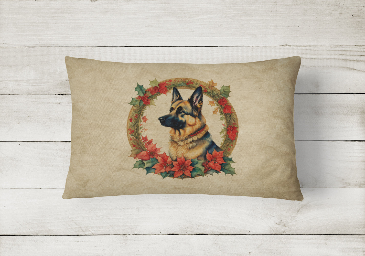 Decorate your space with our Christmas German Shepherd artwork on a Pillow. Bring a bit of Winter into your home with a Winter Pillow. Embrace the fusion of comfort and style with Caroline's Treasures Fabric Decorative Pillow. This 12x16 inch outdoor pillow is designed to complement your patio furniture, adding a splash of color and artistry to your outdoor setting. Constructed with a 100% Polyester Fabric pillow sham filled with a plush pillow form, this cushion is as comfortable as it is durable. Our outdoor pillow utilizes a novel fabric, meticulously woven for enhanced water resistance. This soft canvas material is equally suited for your indoor couch as well as outdoor settings such as the patio, porch, or veranda. To ensure enduring vibrance, we employ colorfast dyes resistant to fading even when subjected to weather elements. The making of this pillow involves the delicate sewing together of three fabric pieces to create a sham, into which a polyester insert is carefully placed. The result is an overstuffed pillow that tenaciously holds its shape. With both the sham and the pillow insert crafted in the United States, these handmade pillows are a testament to superior local craftsmanship. Note that as these pillows are handmade, sizes may slightly vary, enhancing their unique appeal. Enjoy comfort in style with Caroline's Treasures Fabric Decorative Pillow.