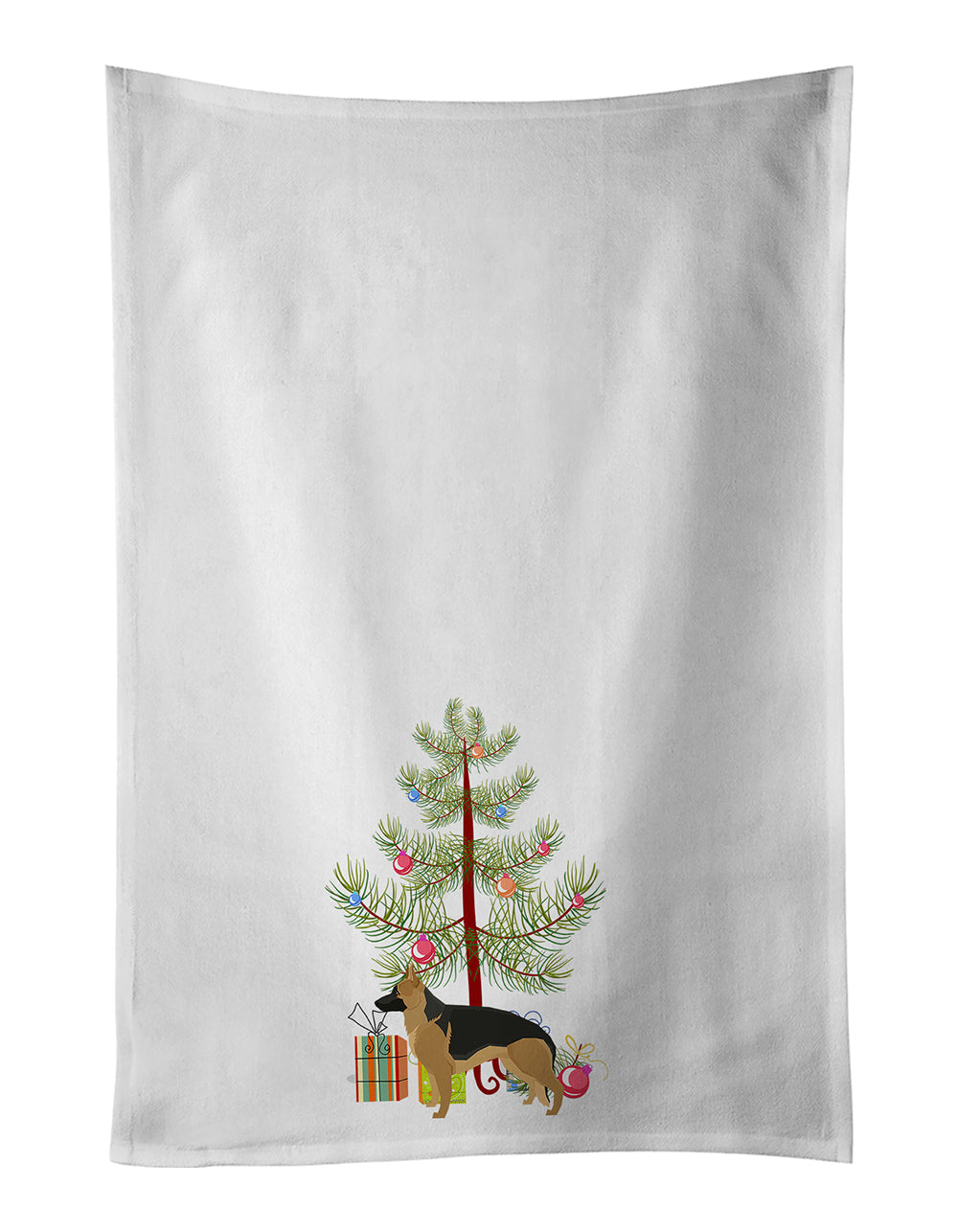 Decorate your space with our Christmas German Shepherd artwork on a Kitchen Cotton Towels. Spruce up your kitchen decor with Caroline's Treasures Decorative White Kitchen Towel Set. This set of two dish towels showcases beautiful artwork from one of our talented artists, making them both practical and visually appealing. These towels are crafted from 100% cotton, offering excellent absorbency and durability, making them ideal for any kitchen task. Each white towel measures 19 inches by 28 inches, providing ample coverage for drying dishes or wiping up spills. The standout feature of these towels is the full-color artwork design printed on each one. They can serve as a vibrant accent in your kitchen, turning a functional item into a delightful piece of decor. When it comes to care, these towels are machine washable in cold water and can be dried on low heat. Remember to always use a pressing cloth when pressing the design, and avoid using bleach on the decorated towel. The Decorative White Kitchen Towel Set makes a great gift or a stylish addition to your own kitchen.