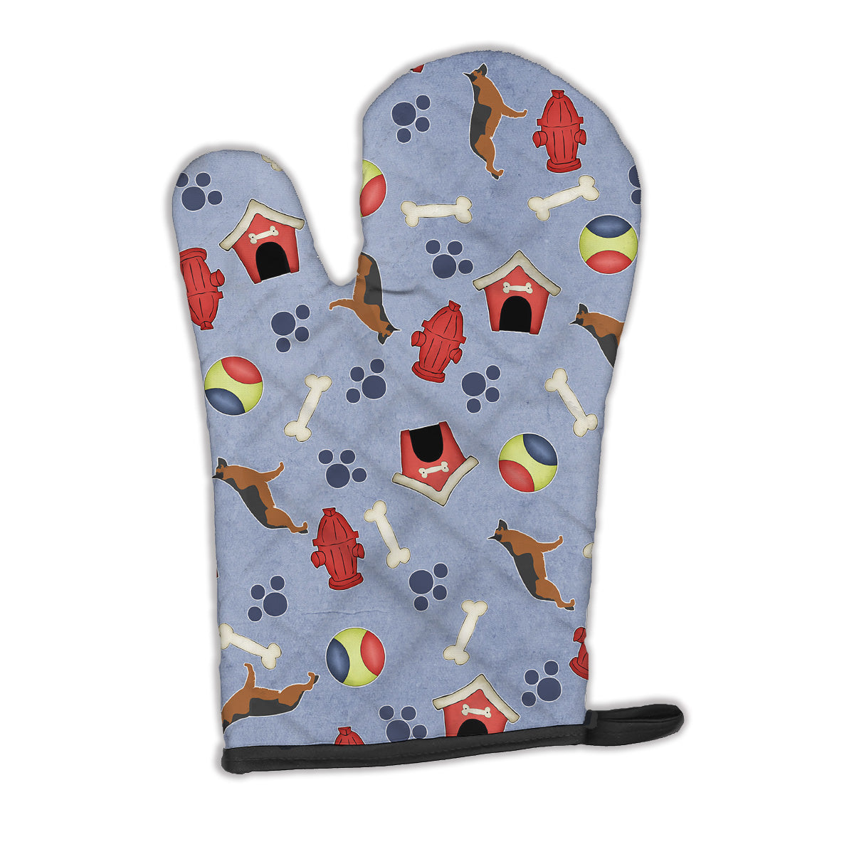 Decorate your space with our German Shepherd artwork on a Oven Mitt. Presenting our Large Right Hand Thick Heat Resistant Oven Mitt, an indispensable tool for any culinary enthusiast. This mitt boasts layers of quilted protection on both sides, providing outstanding resistance against extreme heat. Embellished with beautifully printed artwork, it adds an extra dash of charm to your kitchen decor. At about 12 inches long and 8 1/2 inches wide, this oven mitt offers a generous fit, accommodating a diverse range of hand sizes. Its design is enhanced by a sleek Black bias tape trim, finished with a convenient hoop for easy hanging. Fresh out of the packaging, the quilting process may give the mitt a stiff feel, but rest assured, it will soften with use and washing. Our mitt is crafted with a unique center fabric, Insul-Bright, a composite material made from polyester fibers, needle-punched through a nonwoven substrate and a reflective metallized film. This smart material resists both conduction and radiant energy, reflecting heat back to its source, all while remaining breathable. Our oven mitt is machine washable and safe for tumble drying. It's a perfect gift for your favorite Chef, BBQ enthusiast, or just a little treat for yourself! Experience safety, style, and convenience rolled into one with this exceptional oven mitt.