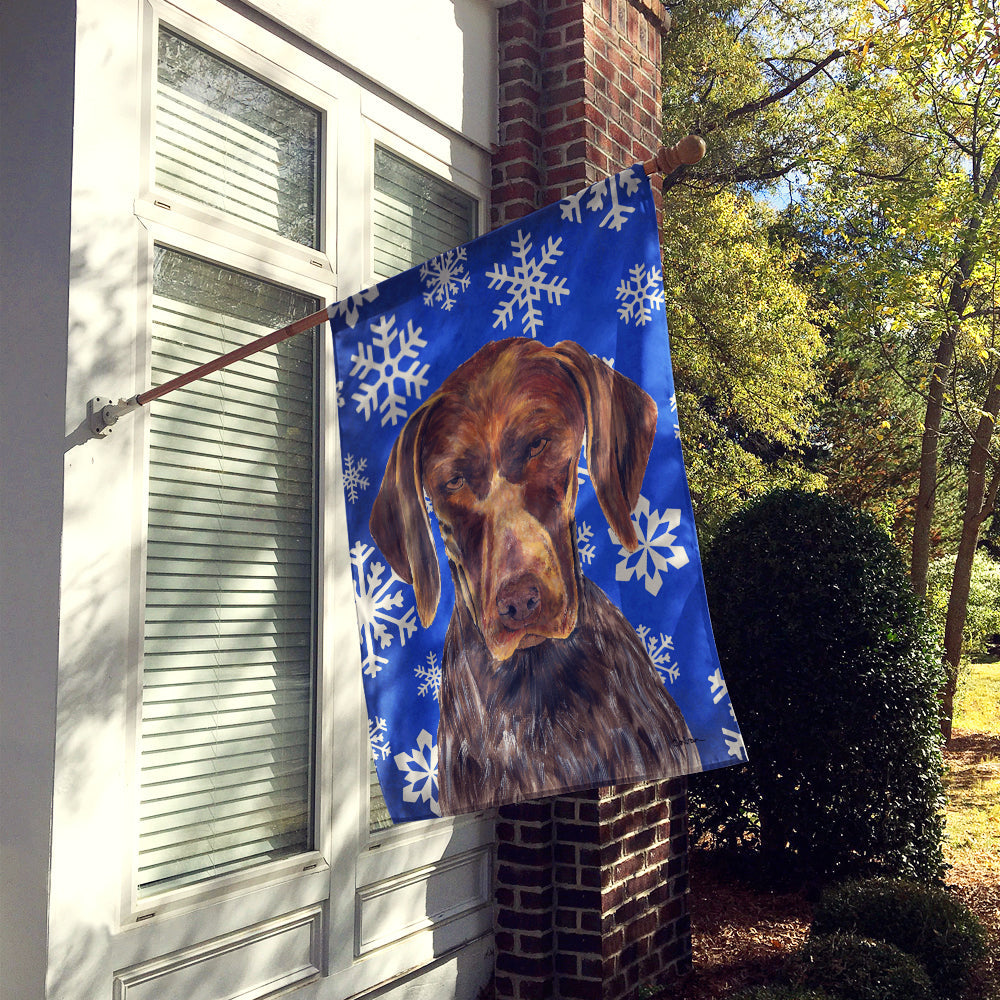 Decorate your space with our Christmas German Shorthaired Pointer artwork on a Large Flag. Bring a bit of Winter into your home with a Winter Large Flag. Presenting our Heavy Duty Polyester House Size Decorative Sleeve Pole Flag, a vibrant addition to enhance the aesthetic appeal of your home. This large decorative flag, measuring approximately 28 x 40 inches, offers ample coverage and visibility. Each flag is meticulously sewn and made individually, ensuring a unique piece that may slightly vary in size. It's a sleeve pole flag, designed to fit a standard decorative flag pole effortlessly. Please note that the flag pole and bracket are not included and should be purchased separately. What sets our flag apart is its dual-sided print. The design is mirrored on both sides of the fabric, allowing for uniform visibility regardless of the angle. Printed in full color, our flag showcases vibrant hues that truly stand out. To ensure lasting vibrancy and durability, the dyes are heat-set into the fabric. This ensures your flag remains bright and captivating through various weather conditions. Elevate the look of your home with our Heavy Duty Polyester House Size Decorative Sleeve Pole Flag!