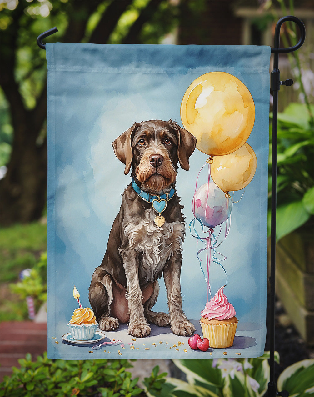 Garden Flag featuring breed specific German Wirehaired Pointer artwork. Celebrate Birthday with this Birthday Garden Flag. Enhance the beauty of your garden, patio, or yard with Caroline's Treasures Decorative Garden Flag, proudly made in the USA. Crafted from two pieces of thick, double-sided polyester fabric, this 2-ply garden flag is designed to withstand various weather conditions, making it water-resistant and weatherproof. Featuring correctly readable words on both sides, this garden flag offers a delightful visual experience from any angle. With its heavier weight, it stands out among other garden flags, ensuring stability and durability even in wind, rain, and snow. Measuring approximately 11 1/4 inches by 15 1/2 inches, this flag allows you to personalize your outdoor decor. It comes with a 1 1/2-inch sleeve sewn in, allowing easy attachment to any standard garden flag stand or garden size porch hanger (sold separately). Make a statement in your outdoor space with Caroline's Treasures Decorative Garden Flag, a vibrant and high-quality flag that adds color and personality to your surroundings. Proudly made in the USA, it's a symbol of quality craftsmanship and attention to detail.