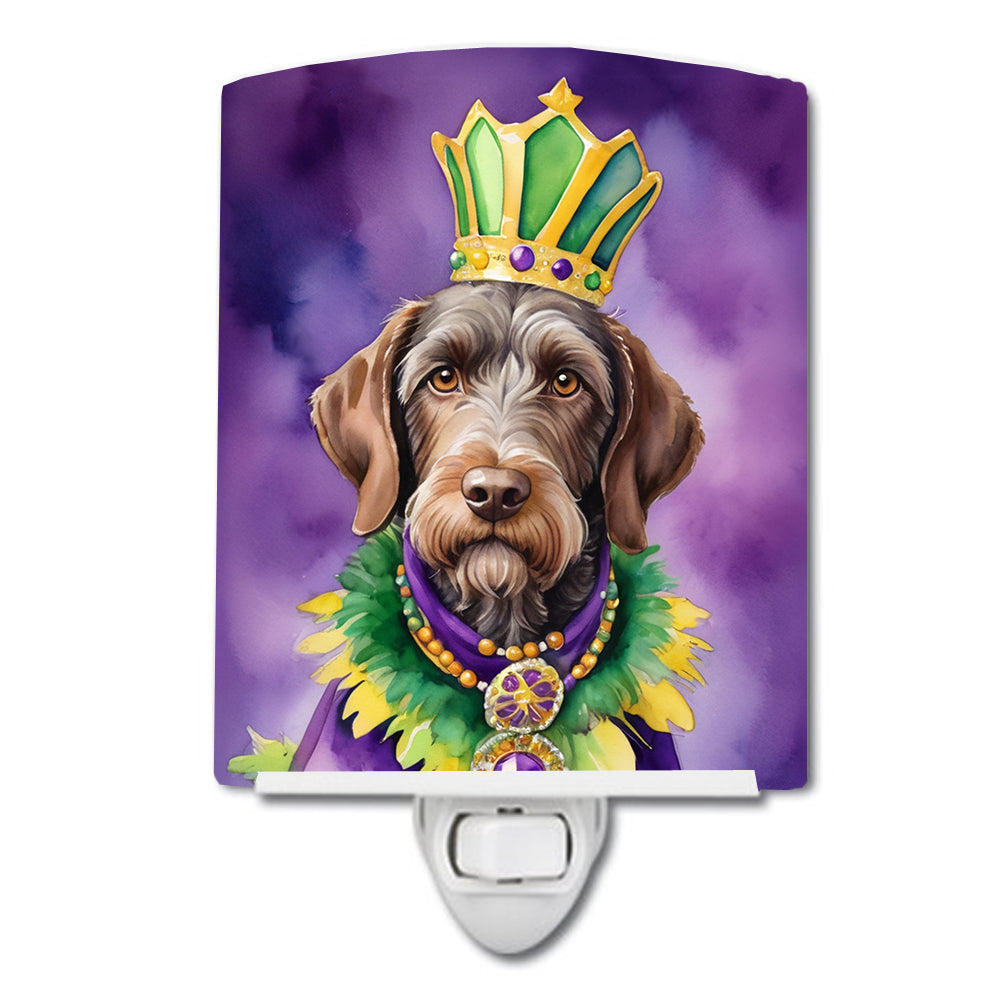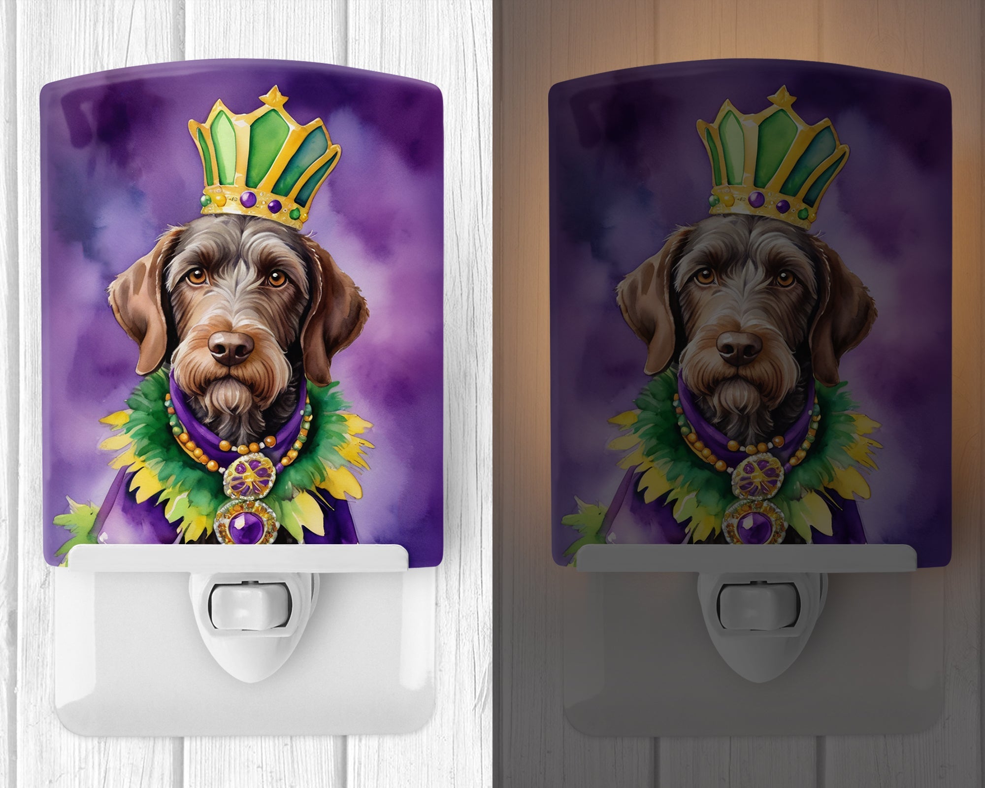 Decorate your space with our Mardi Gras German Wirehaired Pointer artwork on a Night Light. Introduce a splash of artistic flair and subtle illumination to your space with the Decorative Ceramic Night Light from Caroline's Treasures. Perfect for any room, this night light seamlessly blends functionality with an aesthetic appeal, offering a stylish solution to brighten up dark corners of your home or office. Boasting a six-inch high by four-inch wide ceramic tile at the front, it showcases vivid, full-color artwork from distinguished artists, transforming a simple utility into a vibrant art piece. The artwork is securely encased in a robust metal holder, ensuring durability and longevity. Two screws are provided to firmly affix the tile into the holder. The holder extends three inches deep, housing an included bulb that emits a soft, welcoming glow. This product meets all safety standards, as evidenced by its UL approval. Proudly made in the United States from imported components, this Decorative Ceramic Night Light is not just a functional device; it's a statement piece that enhances the ambiance of your surroundings.