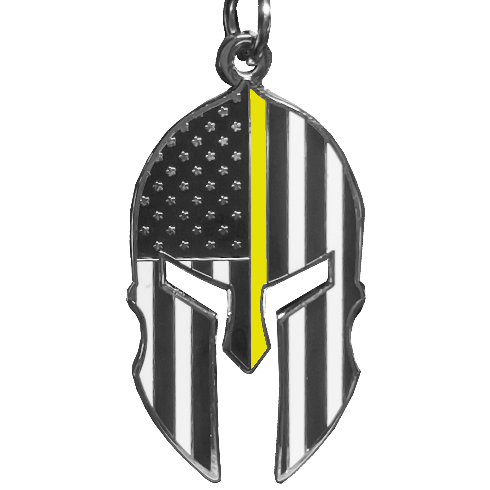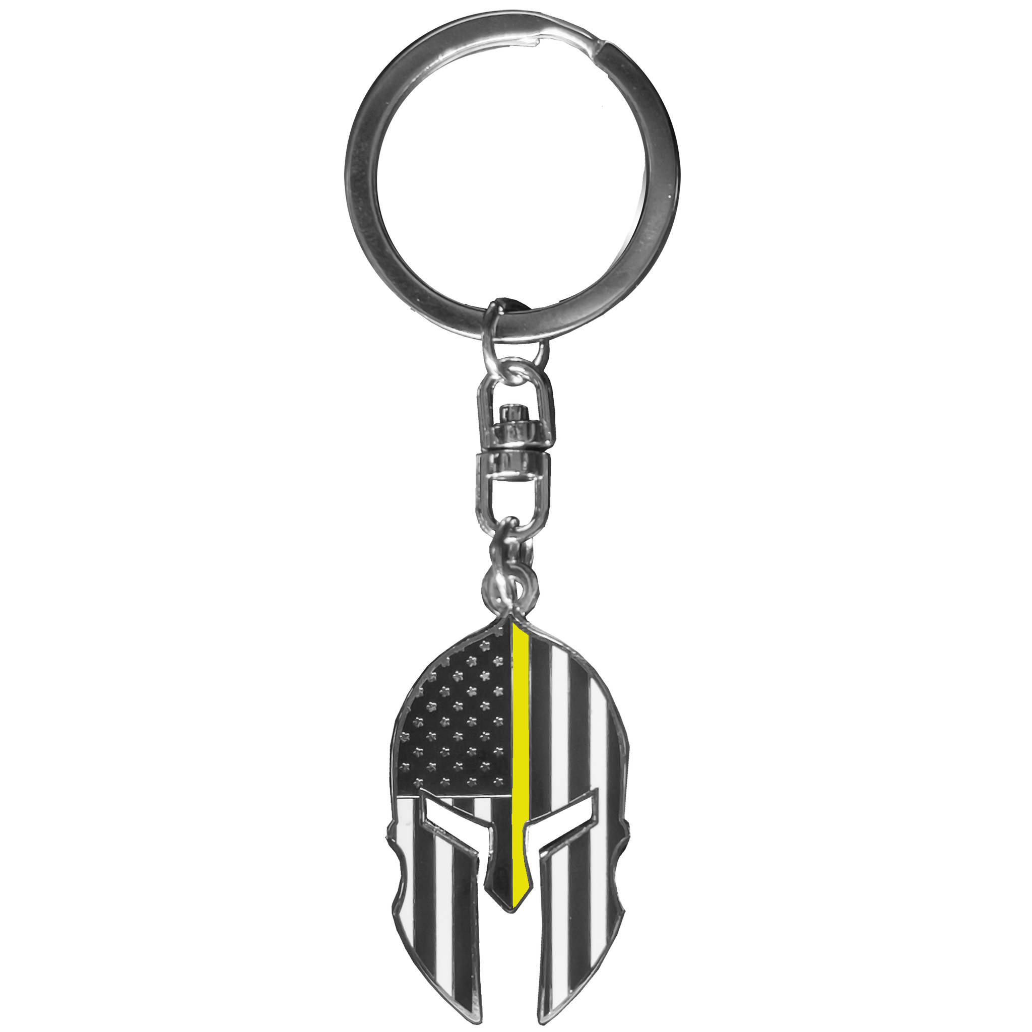 GHKB-1E Gladiator Police Dispatcher Thin Yellow Line Flag Spartan Helmet Trucker Keychain 911 Emergency