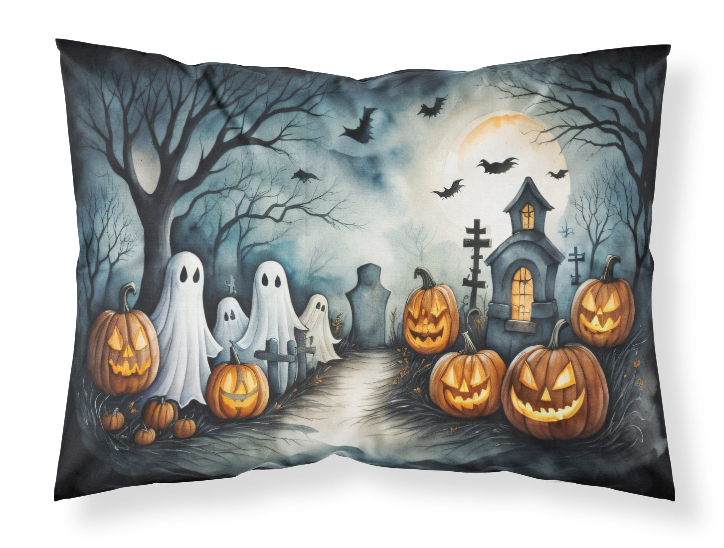 Ghosts Spooky Halloween Fabric Standard Pillowcase – Artistic Decorative Front, White Back