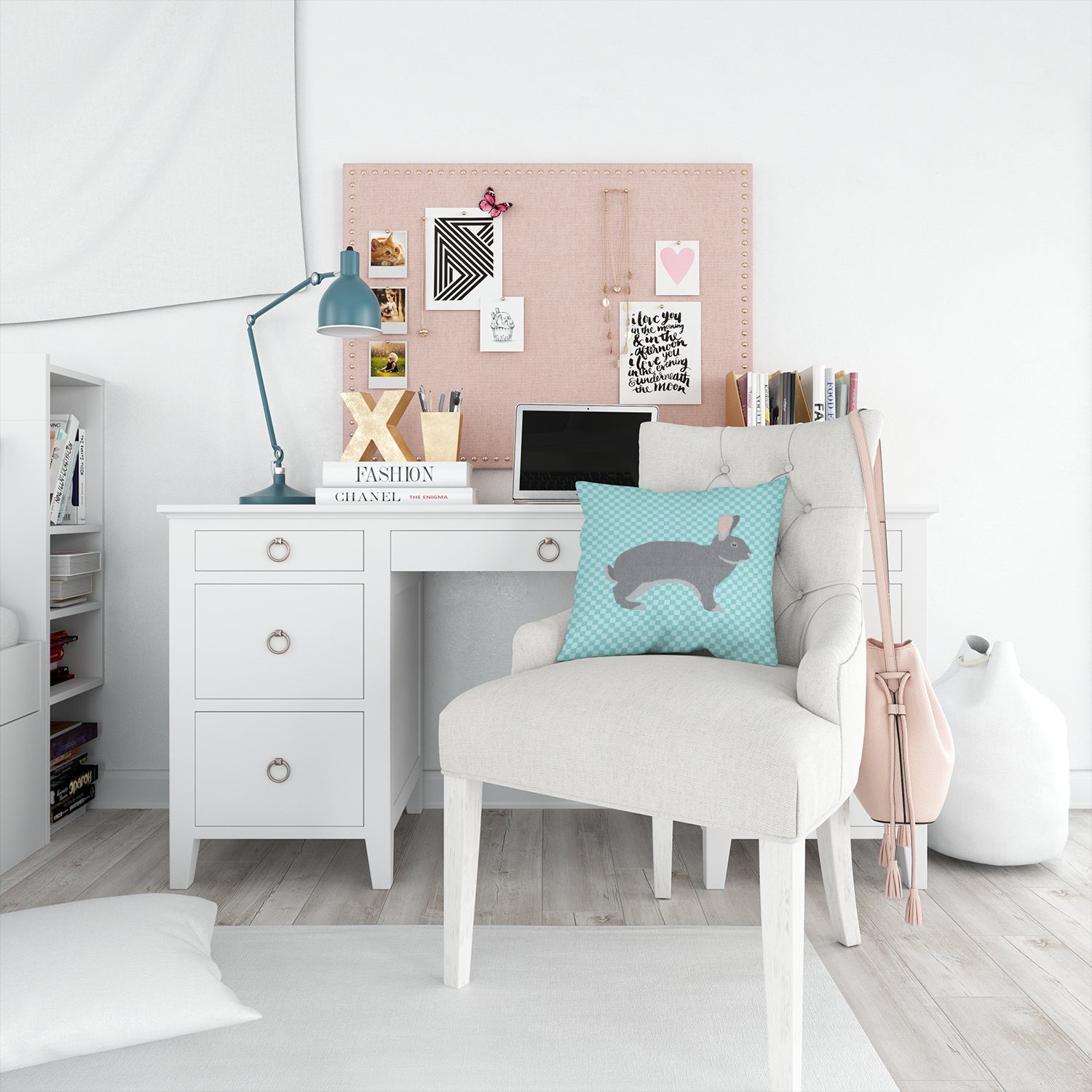 Giant Chinchilla Rabbit Blue Check Throw Pillow - 14x14 Decorative Pillow – Art for Your Home & Patio BB8140PW1414