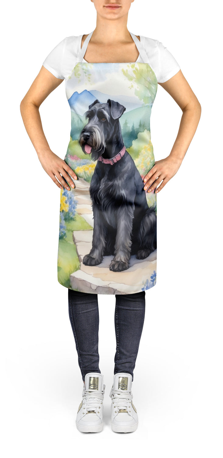 Decorate your space with our Giant Schnauzer artwork on a Apron. Bring a bit of Spring into your home with a Spring Apron. Elevate your cooking, baking, and grilling experiences with our versatile Kitchen or BBQ Apron. This Bib Style apron isn't just limited to culinary activities - it also serves as an excellent baking apron, artist apron, server apron, gardening apron, or even a dog grooming apron. The apron showcases vibrant full-color artwork contributed by one of our talented artists, bringing a dash of style to your daily tasks. With dimensions of approximately 27"W x 30"H, it provides ample coverage to protect your clothing from spills and splashes. Our apron is meticulously crafted from 100% Ultra Spun Polyester, known for its durability and lightweight nature. The apron comes with white tie straps, ensuring a comfortable and adjustable fit for all. It's a perfect choice for kitchen apron enthusiasts, whether you are a woman or a man. Designed for easy maintenance, this apron is fully machine washable. The quick-drying polyester material actively reduces staining, keeping your apron looking fresh and new for longer. Our beautifully designed apron isn't just a functional kitchen accessory - it's a fashion statement in the culinary world!