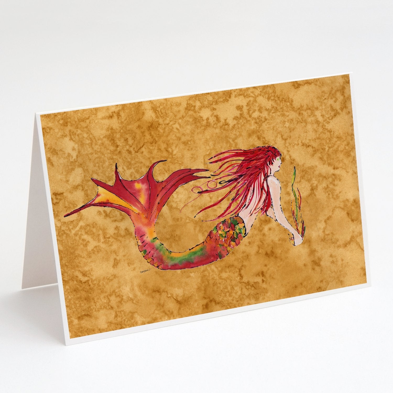 Ginger Red Headed Mermaid on Gold Greeting Cards -  Blank Note Cards – 8-Pack of Artist-Designed Cards with Envelopes