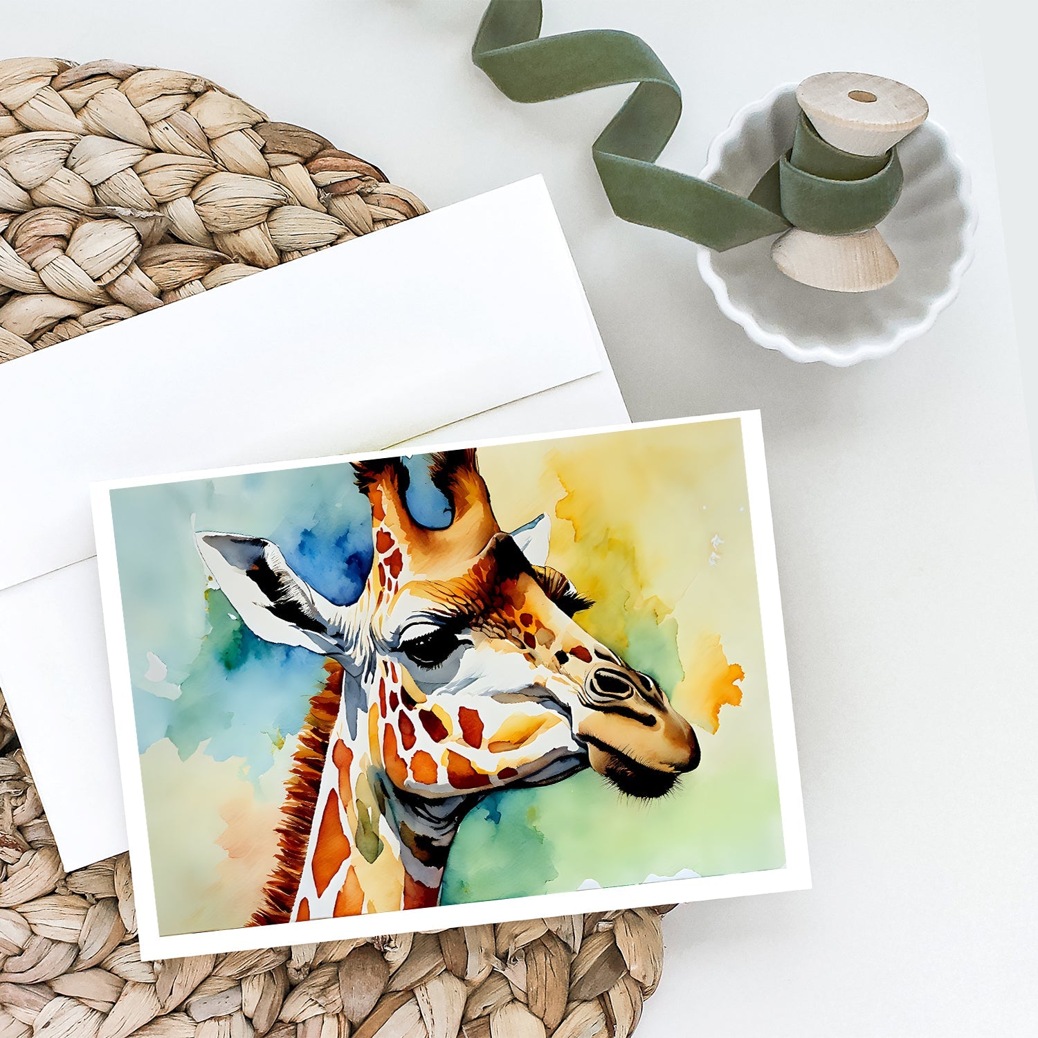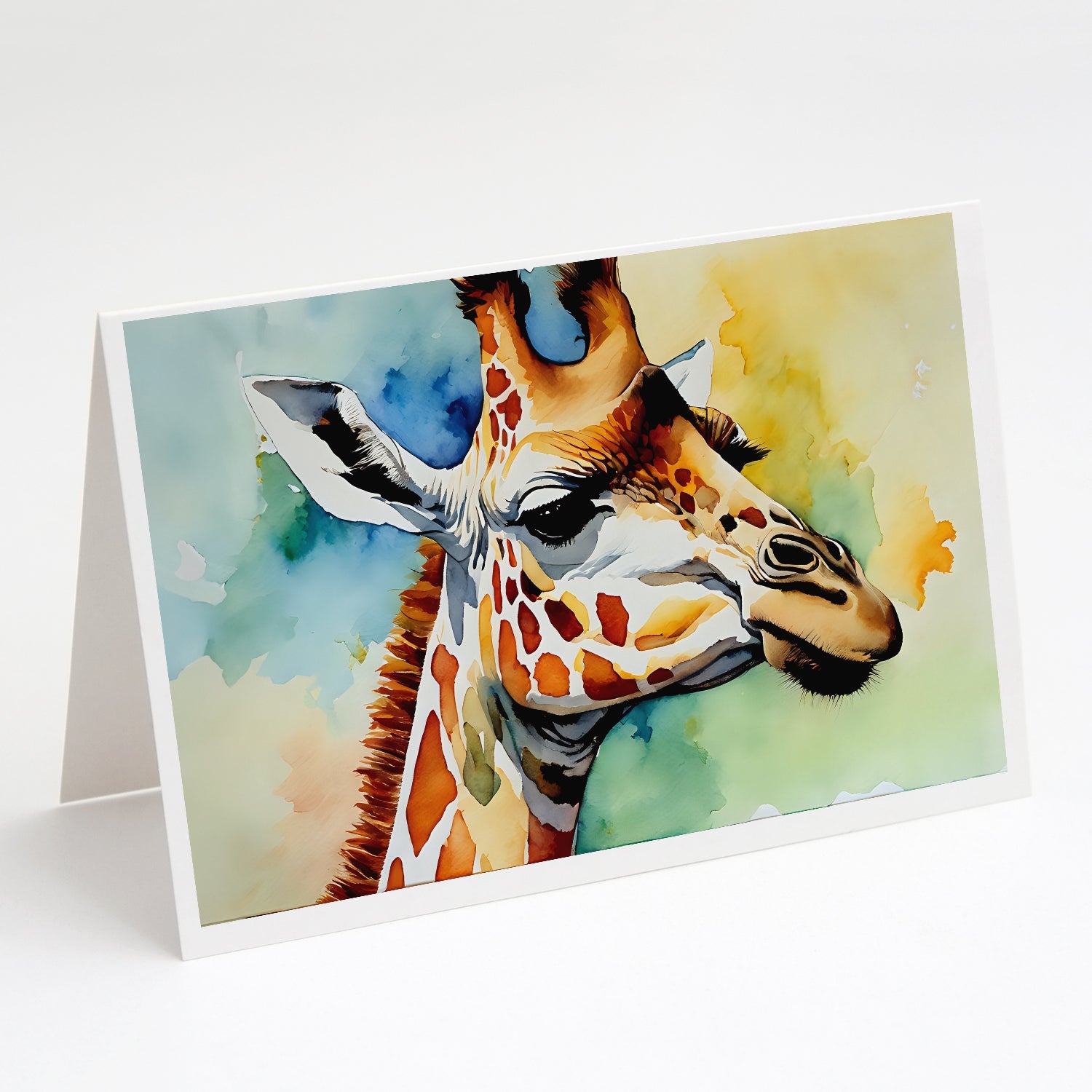 Decorate your space with our Giraffe artwork on a . Celebrate special moments with Caroline's Treasures Printed Greeting Card Pack. This pack includes eight beautifully folded 5x7 cards, accompanied by eight matching white envelopes. With blank interiors, these cards provide ample space for your personalized messages and heartfelt holiday greetings. Each card features captivating full-color artwork, meticulously printed in our facility on high-quality 80 lb cover stock or 216 GSM. The super smooth finish of the white cards enhances the visual impact of the artwork, creating a truly stunning presentation. Designed by our talented in-house artists or licensed artists, the artwork on these cards showcases their creativity and attention to detail. From vibrant illustrations to captivating designs, each card tells its own unique story. Whether it's for birthdays, anniversaries, holidays, or any special occasion, Caroline's Treasures Greeting Card Pack is the perfect way to convey your heartfelt sentiments. Share joy, love, and warm wishes with these exquisite cards and make every moment unforgettable.