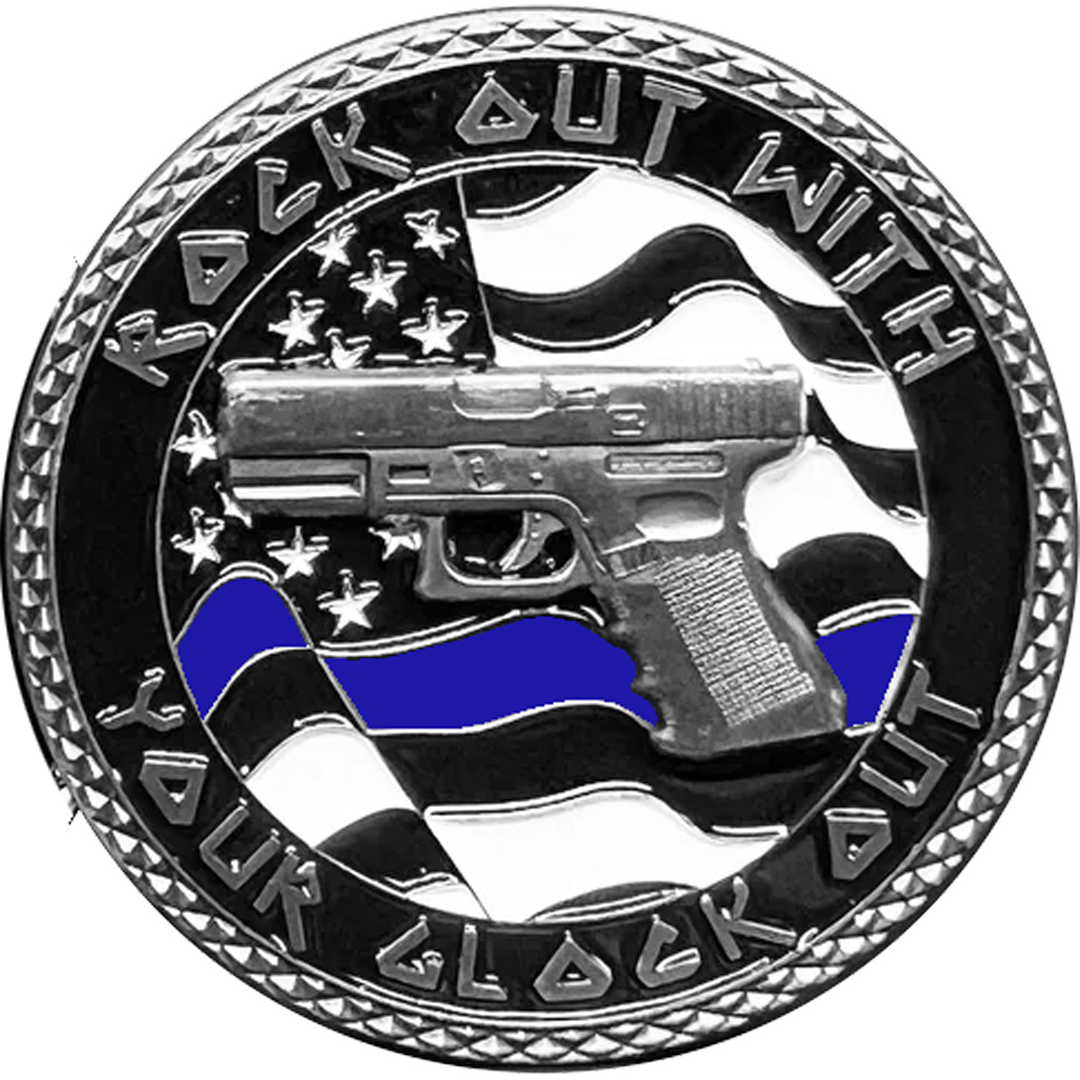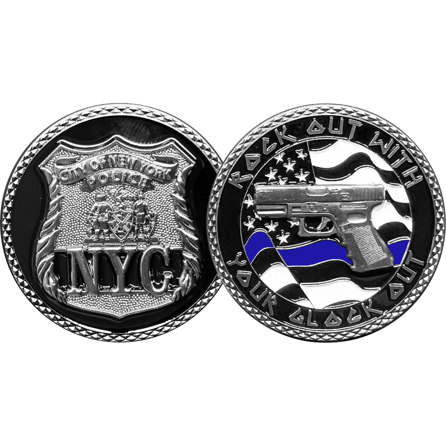 GL10-006 NYPD New York City Police Officer Rock Out Thin Blue Line Flag Challenge Coin