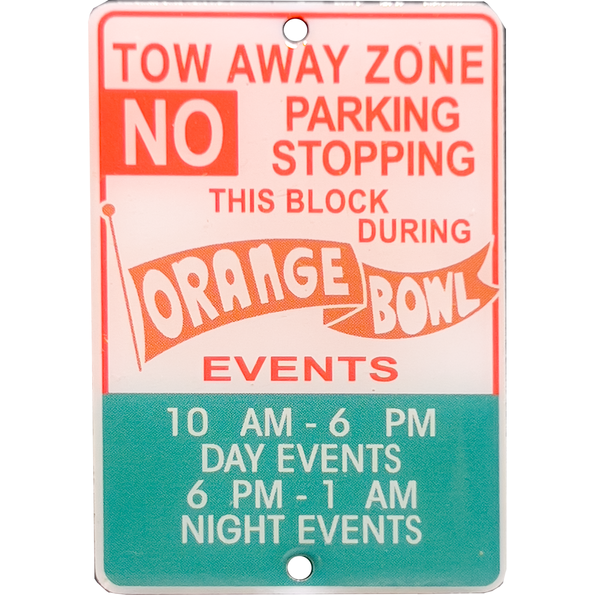 GL16-008 The U Orange Bowl Stadium Vintage street sign lapel pin Miami Tow Away Zone