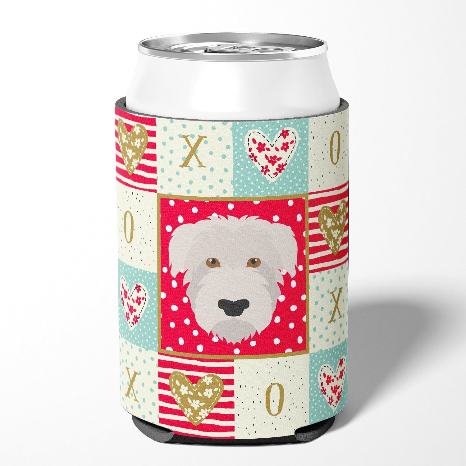 Decorate your space with our Valentine's Day Glen of Imaal artwork on a Hugger. Introducing our Can or Bottle Hugger, a must-have accessory for your beverage enjoyment. Designed to perfectly fit any standard 12-ounce can, this can cooler is the ideal companion to keep your soda, beer, or any drink of your choice at the perfect temperature. Our can hugger is not just functional, it's a work of art. Featuring full-color artwork that's permanently dyed into the foam, this hugger promises a design that's fade-resistant and made to last, making your beverage stand out in style. The design isn't silk-screened, which ensures the vibrancy of the colors, offering you a long-lasting, appealing aesthetic. What sets our can hugger apart is its high-quality foam fabric, which is not only durable but also machine washable for easy maintenance. Whether you call it a huggie, can coolie, can cozie, or beer holder, this drink sleeve brings style and function together. Proudly designed, printed, and sewn in the USA, our Can or Bottle Hugger is an ideal addition to your beverage experience. Match it with one of our insulated coolers for a complete gift set, adding flair and convenience to your drink enjoyment.