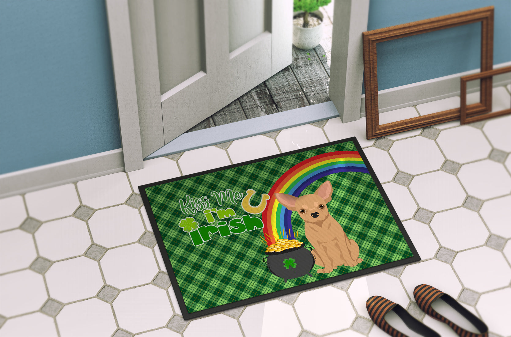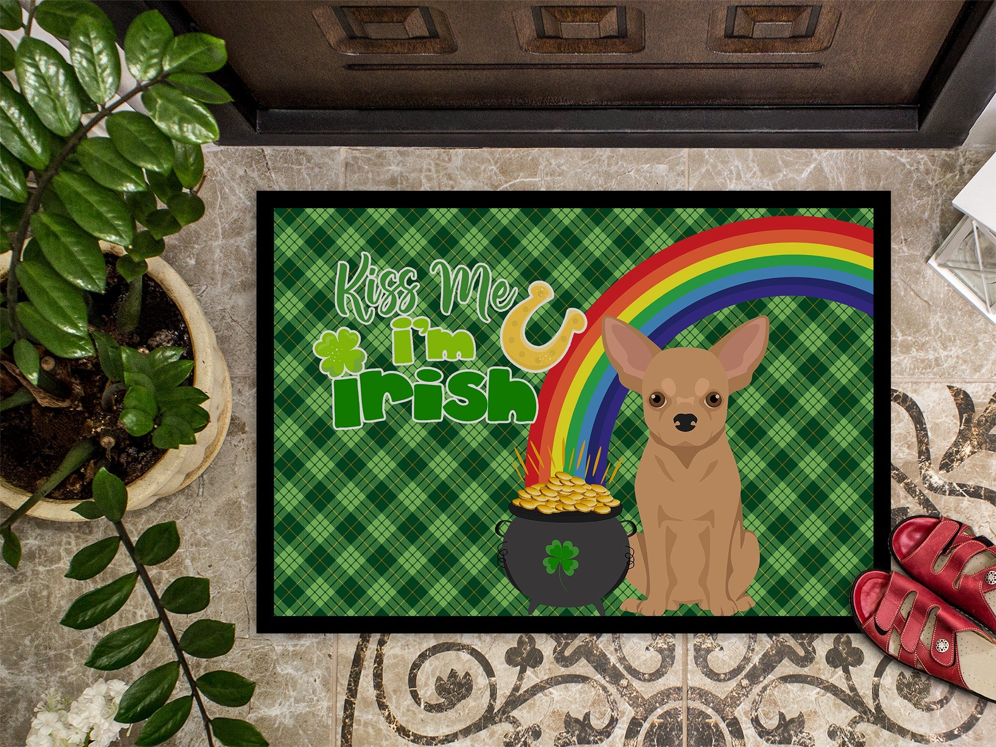 Gold Chihuahua St. Patrick's Day Doormat - 24x36 Decorative Floor Mat – Indoor/Outdoor Rug with Artistic Flair