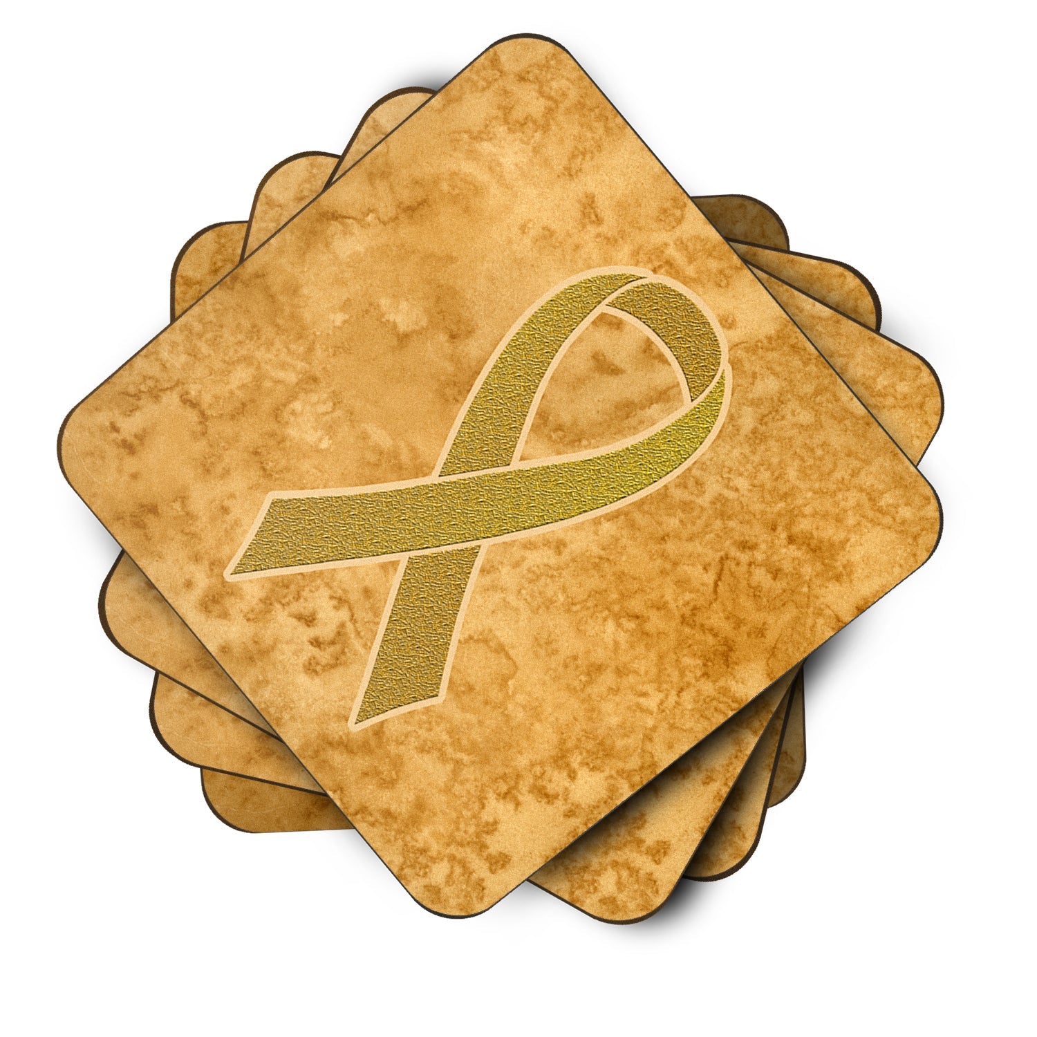Gold Ribbon for Childhood Cancers Awareness Coasters - Set of 4 Lightweight Foam, Absorbent Drink Coasters AN1209FC
