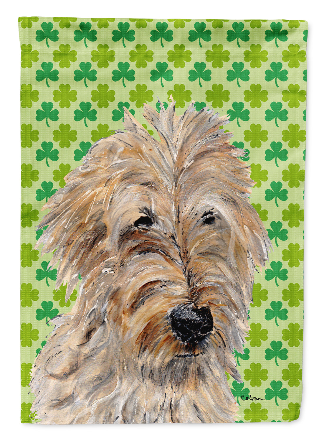 Golden Doodle 2 Lucky Shamrock St. Patrick's Day Flag Canvas House Size SC9739CHF