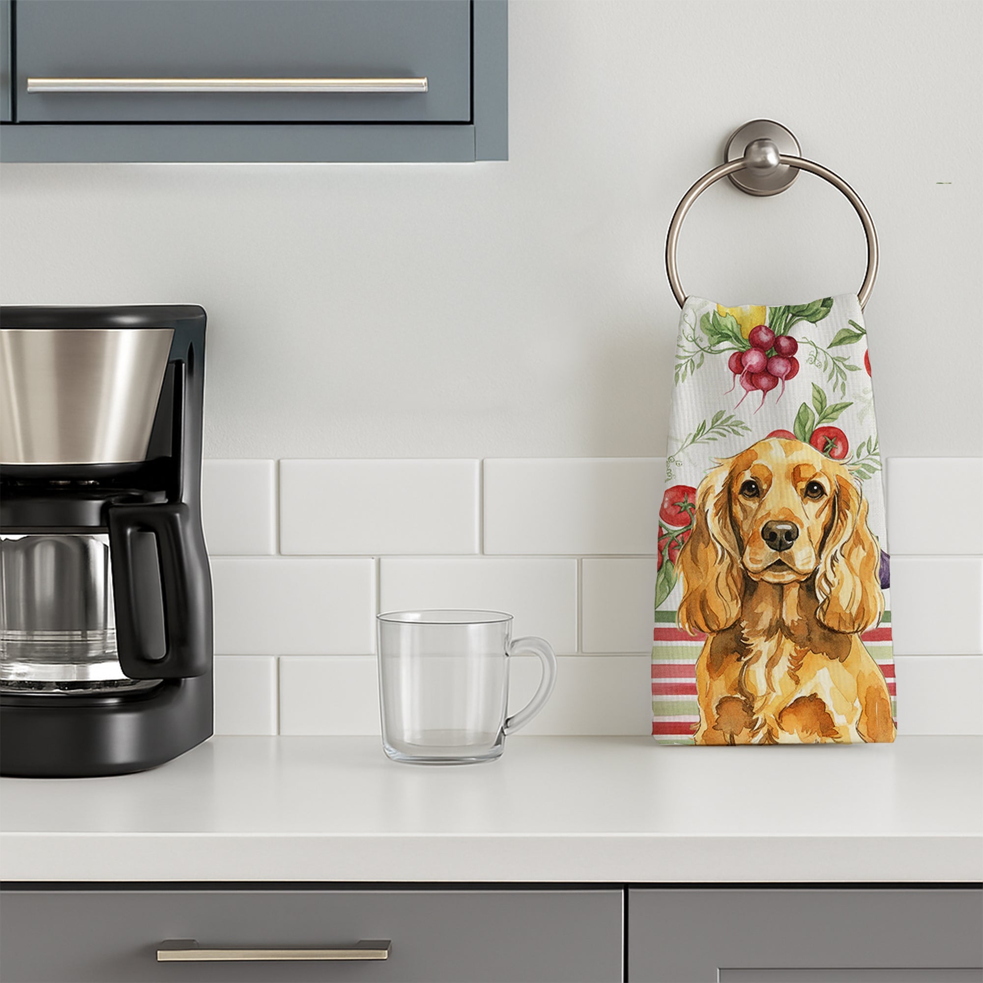 Kitchen Towel featuring breed specific English Cocker Spaniel artwork. Bring cozy everyday charm to your sink or powder room with a plush velour towel featuring original watercolor artwork. The front is a soft, color-rich minky polyester that polishes glassware to a brilliant shine; the back is 100% white cotton terry loop for quick absorbency on hands, dishes, and counters. Artwork is dyed into the fibers for lasting color that won’t crack or peel. Finished edges keep the shape wash after wash. Size: 15" x 25". Machine wash; tumble dry low. Designed and printed in the USA.
