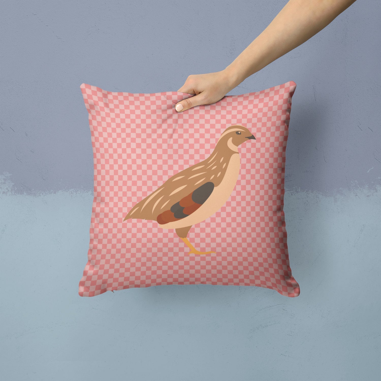 Golden Phoenix Quail Pink Check Throw Pillow - 14x14 Decorative Pillow – Art for Your Home & Patio BB7955PW1414