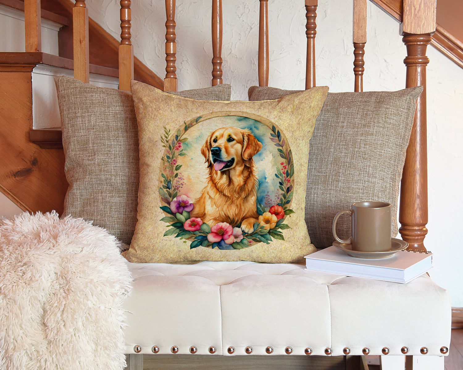 Decorate your space with our Golden Retriever artwork on a Pillow. Bring a bit of Spring into your home with a Spring Pillow. Add a touch of vibrancy and comfort to your outdoor seating with Caroline's Treasures Fabric Decorative Pillow. Measuring approximately 14 inches by 14 inches, this outdoor pillow is crafted to elevate the appeal of your patio furniture, infusing it with vivid color and artistic flair. The pillow includes a 100% Polyester Fabric sham filled with a quality pillow form to provide superior comfort. Innovatively made from our brand new material, specifically woven for its water resistance, this pillow is designed for durability. The soft canvas fabric offers versatility in use, fit for your indoor couch or your outdoor patio, porch, or veranda. The fabric is dyed with colorfast dyes built for resilience against weather conditions, ensuring the pillow retains its beauty over time. Constructed by sewing three fabric pieces to create a sham, the polyester insert is then nestled inside to form the pillow, resulting in an overstuffed pillow that maintains its shape. Both the sham and the pillow insert are proudly made in the United States. As the pillows are handcrafted, there may be minor variations in size, further enhancing their unique charm. Experience comfort in style with Caroline's Treasures Fabric Decorative Pillow.