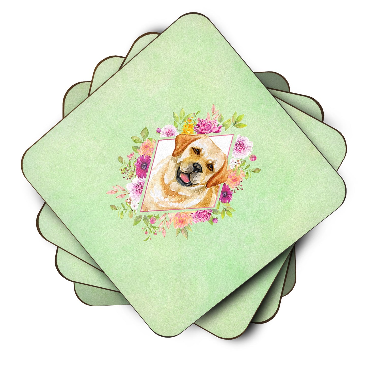 Golden Retriever Green Flowers Coasters - Set of 4 Lightweight Foam, Absorbent Drink Coasters CK4309FC