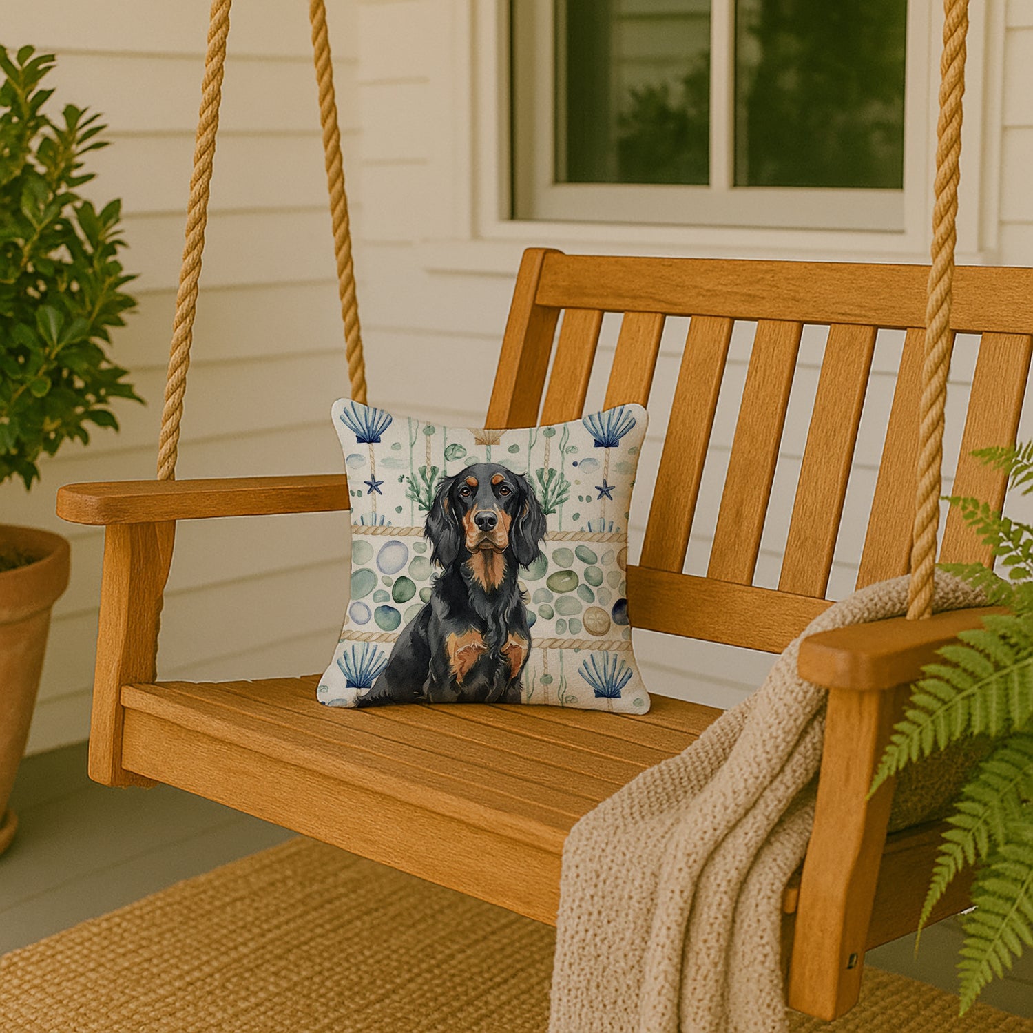 Throw Pillow featuring breed specific Gordon Setter artwork. Add a touch of vibrancy and comfort to your outdoor seating with Caroline's Treasures Fabric Decorative Pillow. Measuring approximately 14 inches by 14 inches, this outdoor pillow is crafted to elevate the appeal of your patio furniture, infusing it with vivid color and artistic flair. The pillow includes a 100% Polyester Fabric sham filled with a quality pillow form to provide superior comfort. Innovatively made from our brand new material, specifically woven for its water resistance, this pillow is designed for durability. The soft canvas fabric offers versatility in use, fit for your indoor couch or your outdoor patio, porch, or veranda. The fabric is dyed with colorfast dyes built for resilience against weather conditions, ensuring the pillow retains its beauty over time. Constructed by sewing three fabric pieces to create a sham, the polyester insert is then nestled inside to form the pillow, resulting in an overstuffed pillow that maintains its shape. Both the sham and the pillow insert are proudly made in the United States. As the pillows are handcrafted, there may be minor variations in size, further enhancing their unique charm. Experience comfort in style with Caroline's Treasures Fabric Decorative Pillow.