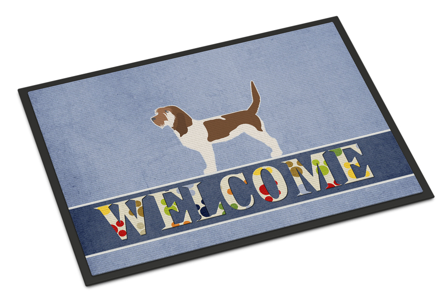 Decorate your space with our Petit Basset Griffon Vend�en artwork on a Doormat. Welcome your guests in style with our Artwork Door Mat, designed to withstand almost any weather condition. This mat, measuring approximately 24 by 36 inches, is held together by durable black binding tape. Its top layer, composed of polyester felt, is dyed with the eye-catching image you see on the mat. A few layers below provide the mat with stability, while its rubber bottom is stamped to help prevent slipping and ensures safety. Our mat works wonderfully as both an indoor or outdoor door mat. For cleaning, simply hose it off with water or use a power washer - no need for any cleaner that produces suds. Avoid scrubbing with a brush, instead, opt for the vacuum on floor setting. Designed manufactured and printed in the USA, this mat is a perfect addition to your porch, outdoor kitchen, entryway, or any indoor space. Its unique design makes it a charming decorative rug that greets your guests and adds a stylish touch to your home decor.