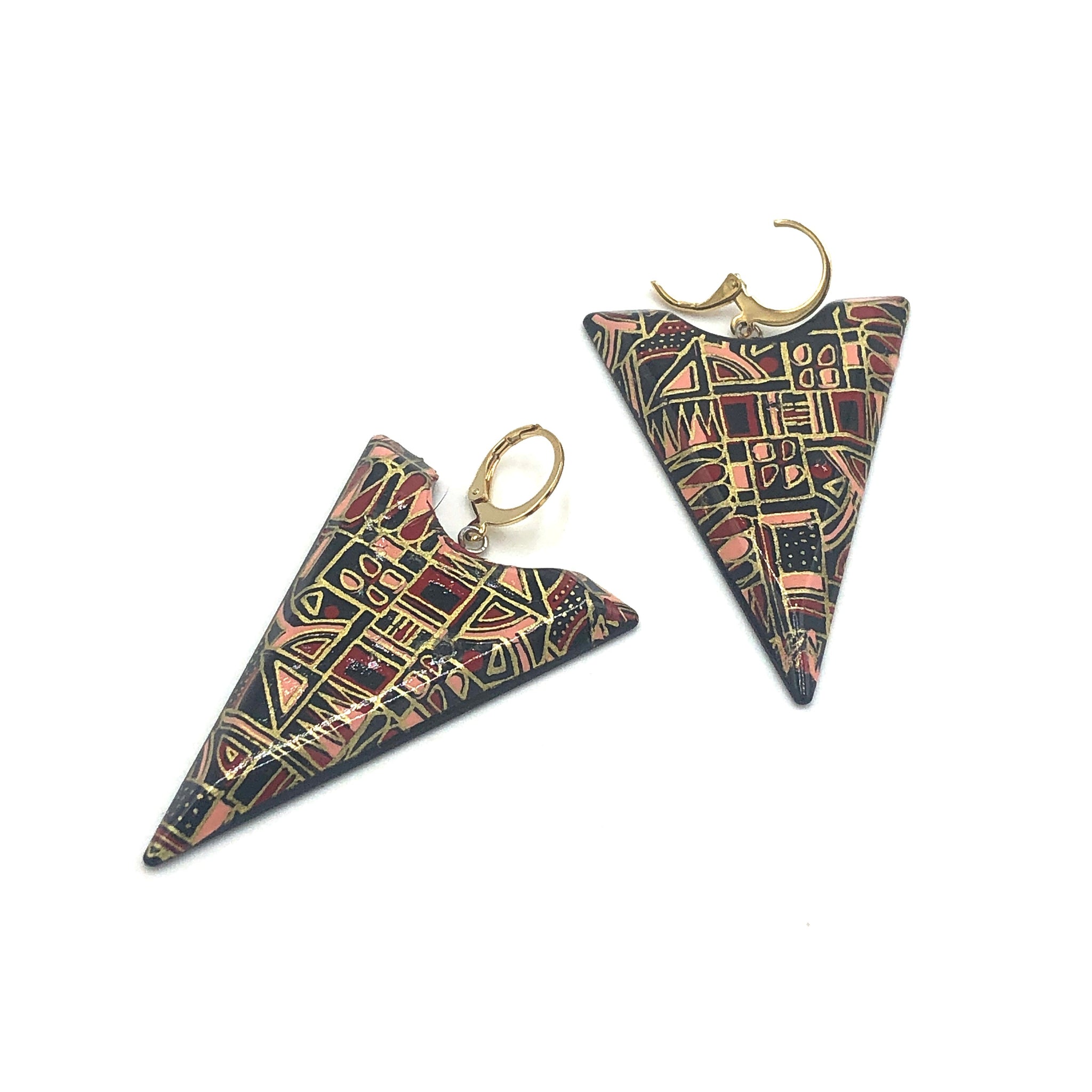 These are so '90's - vintage pyramid shaped earrings in a drop style with a hoop shaped leverback earwire. Available in 2 color choices!