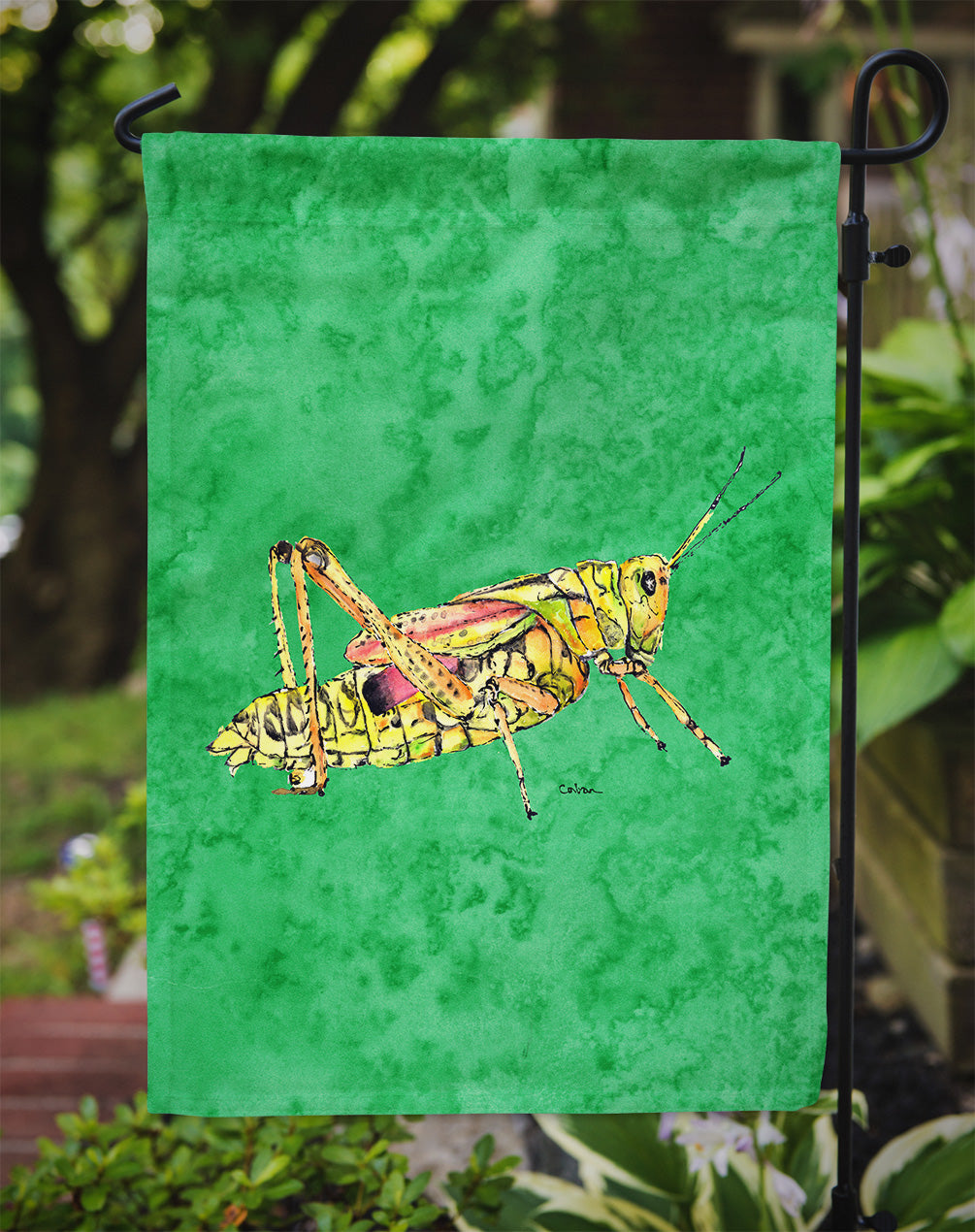 Grasshopper on Green Garden Flag – Decorative Outdoor Yard Flag