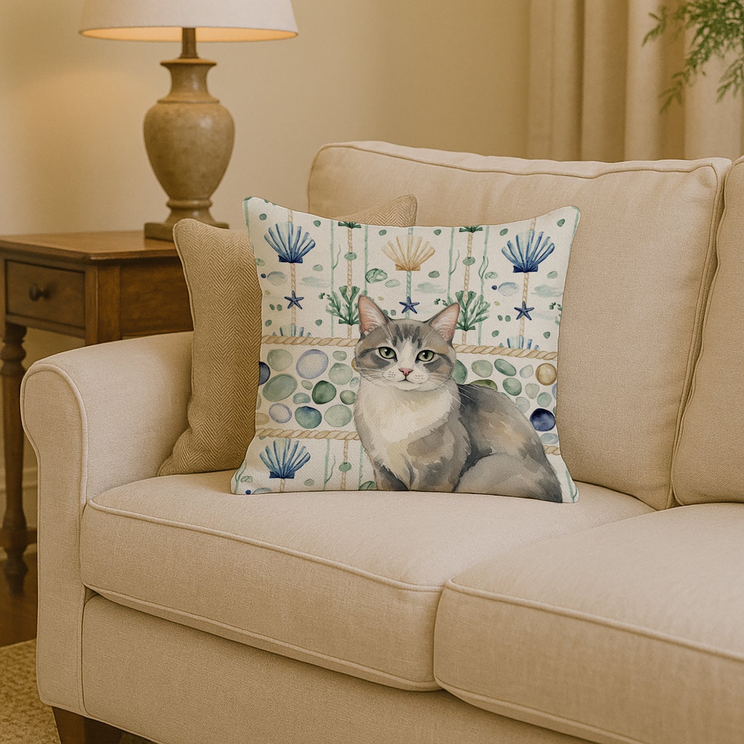 Throw Pillow featuring breed specific Gray and White artwork. Add a touch of vibrancy and comfort to your outdoor seating with Caroline's Treasures Fabric Decorative Pillow. Measuring approximately 14 inches by 14 inches, this outdoor pillow is crafted to elevate the appeal of your patio furniture, infusing it with vivid color and artistic flair. The pillow includes a 100% Polyester Fabric sham filled with a quality pillow form to provide superior comfort. Innovatively made from our brand new material, specifically woven for its water resistance, this pillow is designed for durability. The soft canvas fabric offers versatility in use, fit for your indoor couch or your outdoor patio, porch, or veranda. The fabric is dyed with colorfast dyes built for resilience against weather conditions, ensuring the pillow retains its beauty over time. Constructed by sewing three fabric pieces to create a sham, the polyester insert is then nestled inside to form the pillow, resulting in an overstuffed pillow that maintains its shape. Both the sham and the pillow insert are proudly made in the United States. As the pillows are handcrafted, there may be minor variations in size, further enhancing their unique charm. Experience comfort in style with Caroline's Treasures Fabric Decorative Pillow.