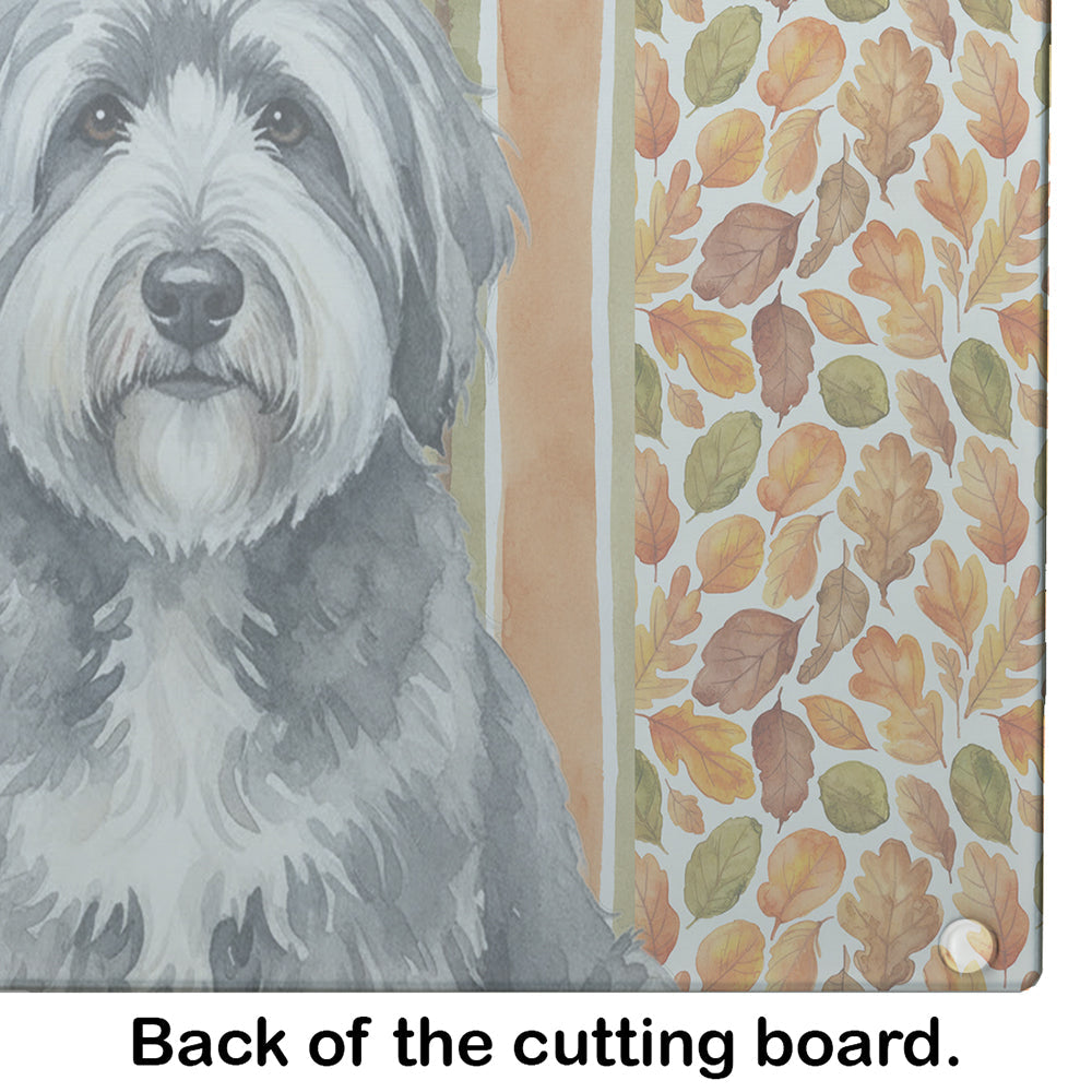 Gray and White Old English Sheepdog Heirloom Fall Glass Cutting Board
