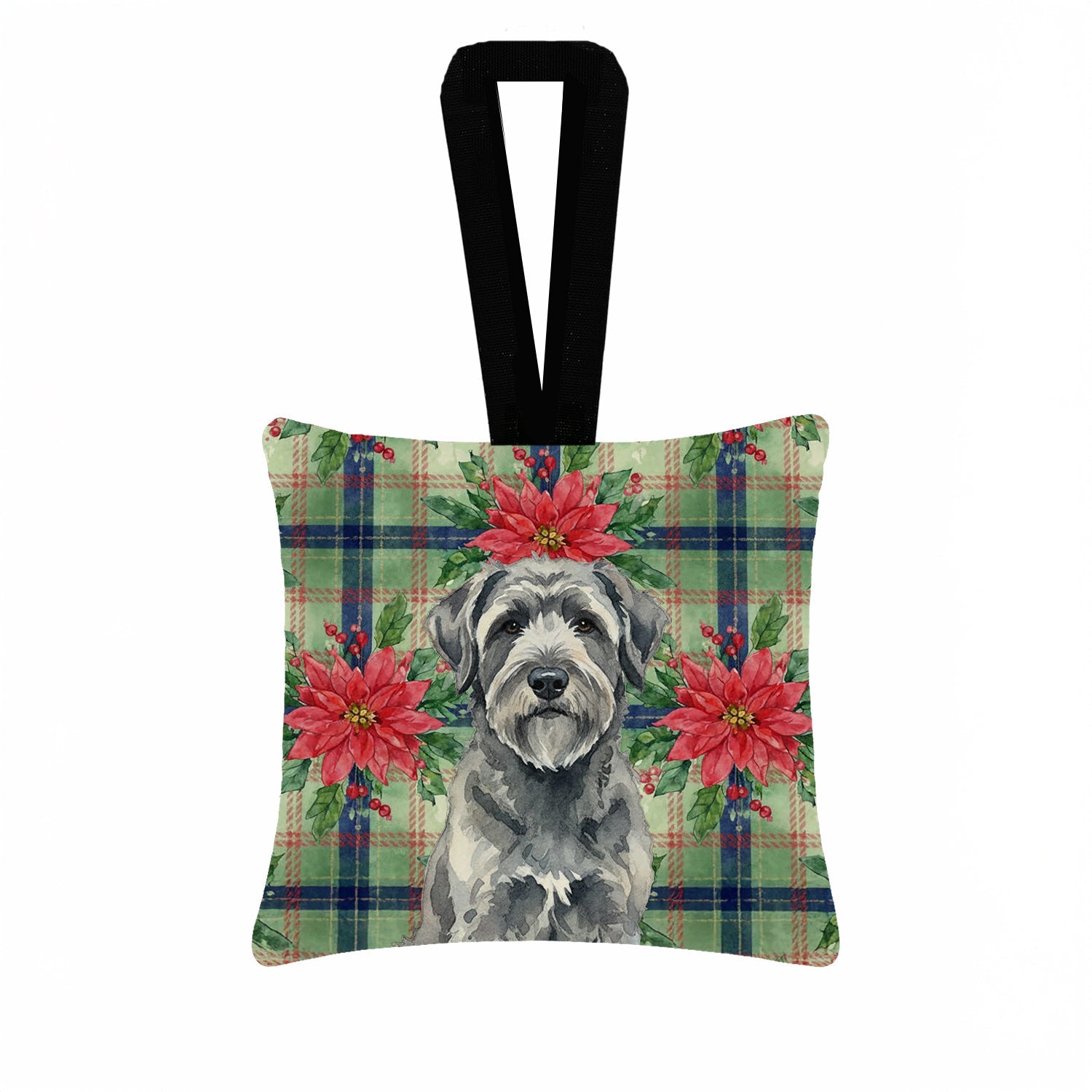 Gray Bouvier des Flandres Christmas PoinsettIas Hanging Square Fabric Ornament 3.5 x 3.5
