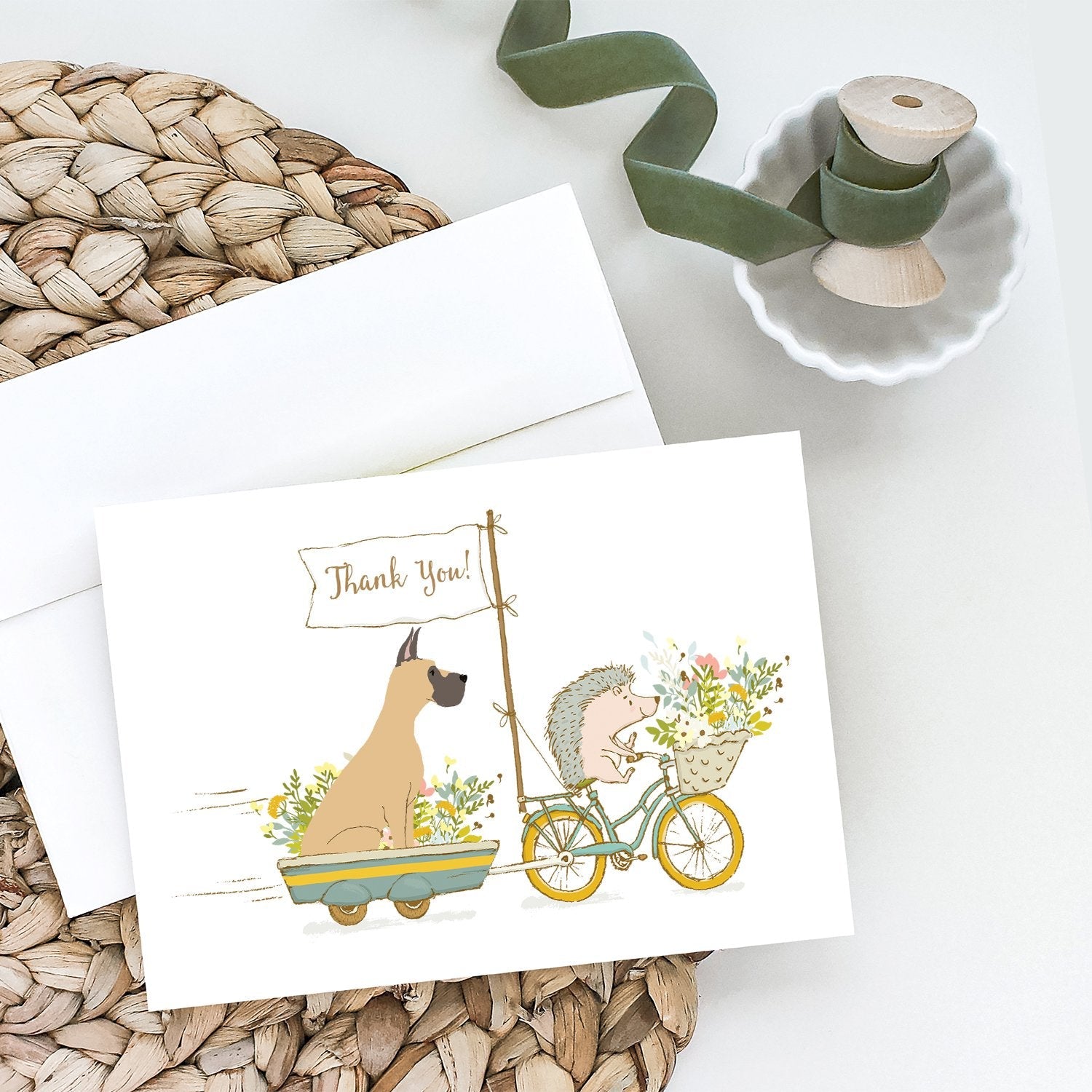 Great Dane Fawn Cropped Ears Greeting Cards -  Blank Note Cards – 8-Pack of Artist-Designed Cards with Envelopes