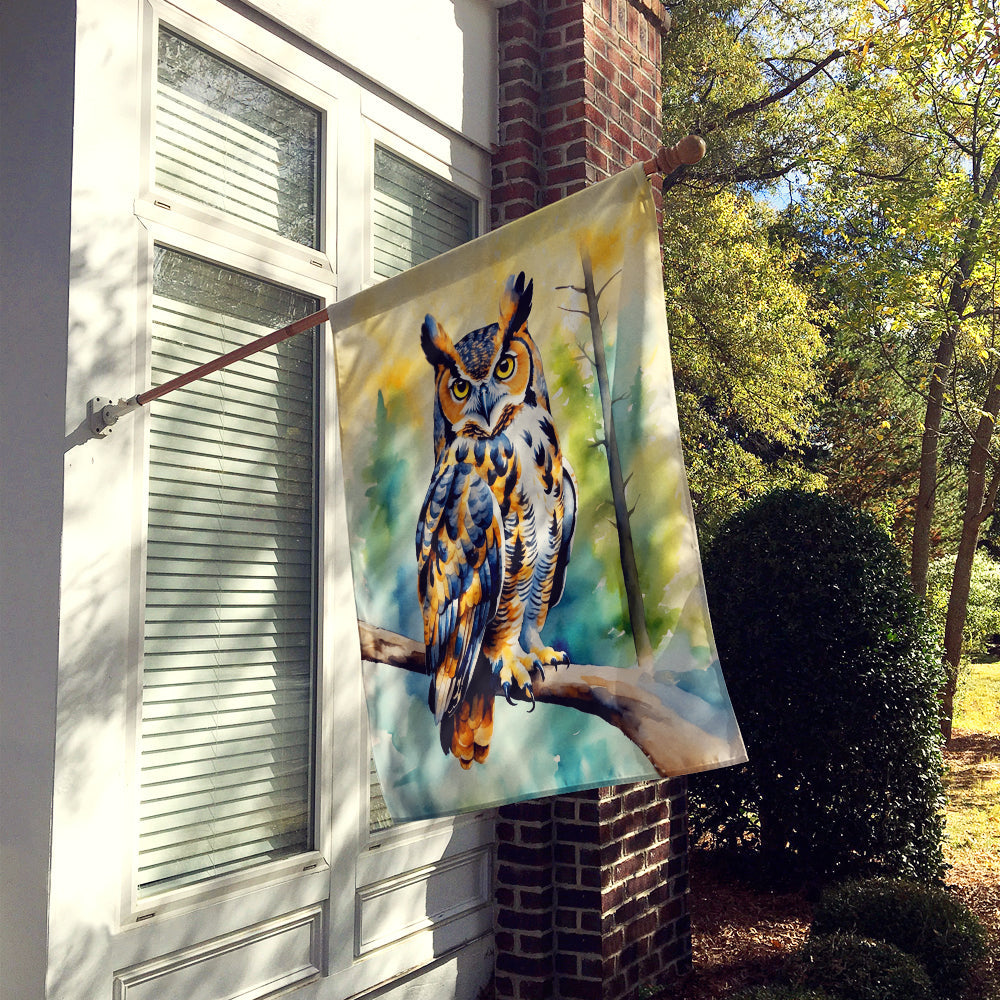 House Flag featuring breed specific Great Horned Owl artwork. Presenting our Heavy Duty Polyester House Size Decorative Sleeve Pole Flag, a vibrant addition to enhance the aesthetic appeal of your home. This large decorative flag, measuring approximately 28 x 40 inches, offers ample coverage and visibility. Each flag is meticulously sewn and made individually, ensuring a unique piece that may slightly vary in size. It's a sleeve pole flag, designed to fit a standard decorative flag pole effortlessly. Please note that the flag pole and bracket are not included and should be purchased separately. What sets our flag apart is its dual-sided print. The design is mirrored on both sides of the fabric, allowing for uniform visibility regardless of the angle. Printed in full color, our flag showcases vibrant hues that truly stand out. To ensure lasting vibrancy and durability, the dyes are heat-set into the fabric. This ensures your flag remains bright and captivating through various weather conditions. Elevate the look of your home with our Heavy Duty Polyester House Size Decorative Sleeve Pole Flag!