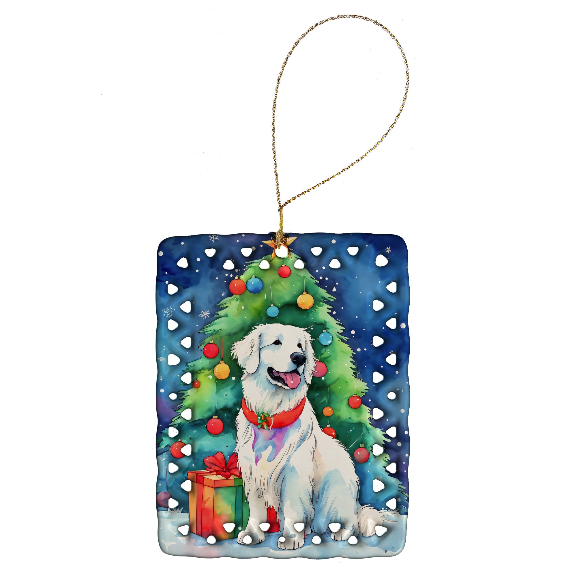 Porcelain Ornament featuring breed specific Great Pyrenees artwork. Celebrate Christmas with this Christmas Ornament. Add a unique, personal touch to your holiday decor with our Rectangular Lattice Porcelain Ornament. Perfect for creating cherished memories, this high-quality ornament shines under festive lights, reflecting warmth and joy throughout your Christmas tree. Crafted with a glossy finish, it showcases vibrant, full-color artwork contributed by our talented artists, ensuring your tree is adorned with a burst of color and holiday spirit. What sets this Porcelain Ornament apart is its customizable white back. Use a paint pen or permanent marker to write a heartfelt message, commemorate a special year, or mark an unforgettable date, turning this ornament into a keepsake that will be treasured for years to come. For best results, allow any personalization to dry thoroughly before handling. Each ornament comes complete with a delicate gold cord, making it easy to hang and display. Proudly made in the USA, this ornament measures 3.375 x 2.625 inches and is a thoughtful gift for pet sitters, teachers, family members, or anyone who would appreciate a little extra holiday magic. Bring style, charm, and a touch of personal meaning to your Christmas tree with this beautifully designed ornament..