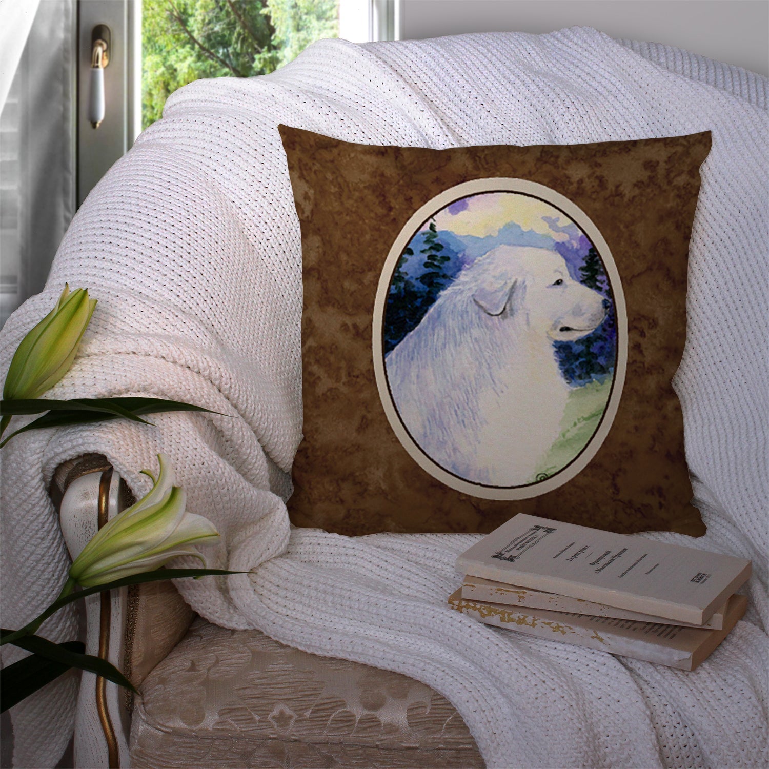 Decorate your space with our Great Pyrenees artwork on a Pillow. Add a touch of vibrancy and comfort to your outdoor seating with Caroline's Treasures Fabric Decorative Pillow. Measuring approximately 14 inches by 14 inches, this outdoor pillow is crafted to elevate the appeal of your patio furniture, infusing it with vivid color and artistic flair. The pillow includes a 100% Polyester Fabric sham filled with a quality pillow form to provide superior comfort. Innovatively made from our brand new material, specifically woven for its water resistance, this pillow is designed for durability. The soft canvas fabric offers versatility in use, fit for your indoor couch or your outdoor patio, porch, or veranda. The fabric is dyed with colorfast dyes built for resilience against weather conditions, ensuring the pillow retains its beauty over time. Constructed by sewing three fabric pieces to create a sham, the polyester insert is then nestled inside to form the pillow, resulting in an overstuffed pillow that maintains its shape. Both the sham and the pillow insert are proudly made in the United States. As the pillows are handcrafted, there may be minor variations in size, further enhancing their unique charm. Experience comfort in style with Caroline's Treasures Fabric Decorative Pillow.