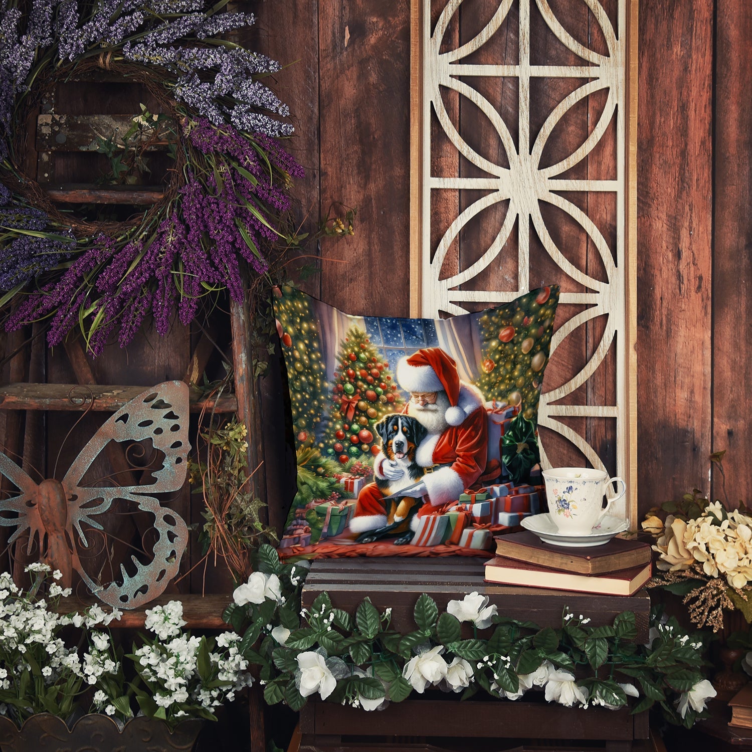 Throw Pillow featuring breed specific Greater Swiss Mountain Dog artwork. Celebrate Christmas with this Christmas Pillow. Revitalize your outdoor or indoor living space with Caroline's Treasures 18x18 Fabric Decorative Pillow. With a generously sized dimension of approximately 18 inches by 18 inches, this pillow makes a comfortable and aesthetic addition to any seating area. Made from a unique, water-resistant material developed by Caroline's Treasures, the pillow sham is 100% polyester fabric that's durable and ready to weather any condition. Its vibrant, full-color artwork will not fade over time as it is dyed with color-fast dyes. Whether you place it on your patio furniture, porch, veranda, or indoor couch, its soft canvas fabric ensures a cozy experience. The pillow is handcrafted in the United States, featuring a sham created from three pieces of fabric and a polyester insert for enduring shape and overstuffed comfort. Despite being robustly built to endure the outdoors, it is as soft and snug as your favorite indoor cushions. Please note, as all our pillows are handmade, sizes may vary slightly, adding to the charm of this unique decorative item.