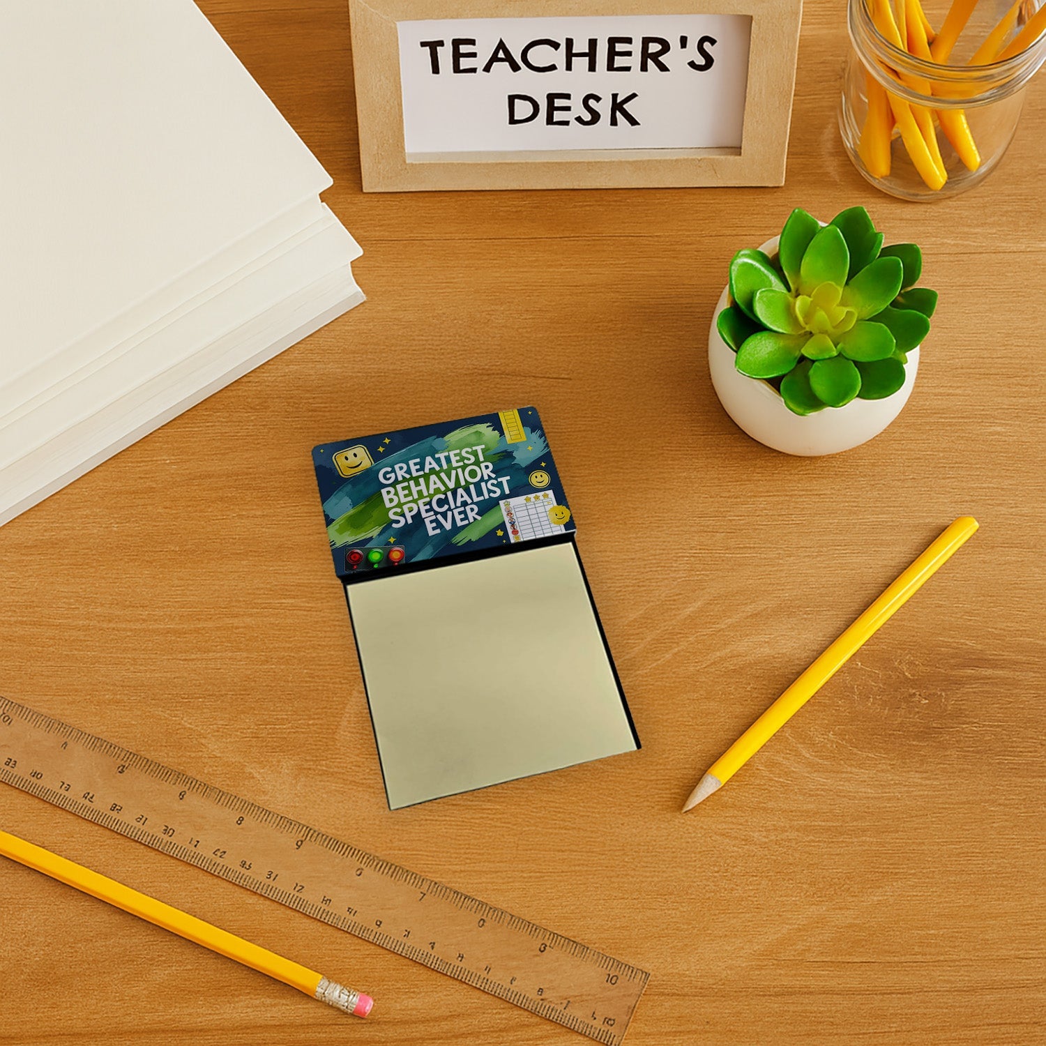 Celebrate the educators who inspire every day with this funny teacher sticky note holder from Caroline’s Treasures. Proudly made in the USA, each design features the phrase Greatest Behavior Specialist Ever - in bold, colorful artwork that turns an everyday desk accessory into a thoughtful gift. The sturdy base holds 3" x 3" sticky notes securely while you write, and the glossy aluminum art plate adds a durable, fade-resistant finish that lasts. Refilling is easy—just roll a piece of tape around your finger, press it to the back sheet of a new pad, and attach it to the board. Ideal for classrooms, offices, or home desks, these note holders make a meaningful gift for Teacher Appreciation Week, back-to-school, end-of-year celebrations, or simply saying thank you.