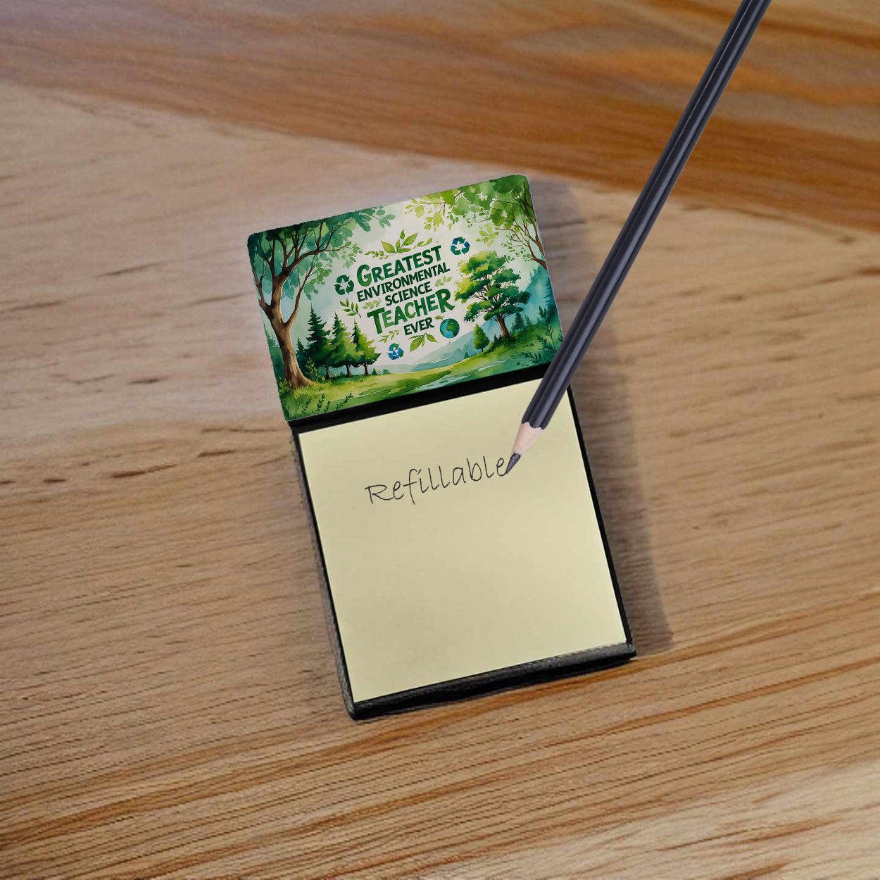 Celebrate the educators who inspire every day with this funny teacher sticky note holder from Caroline’s Treasures. Proudly made in the USA, each design features the phrase Greatest Environmental Science Teacher Ever - in bold, colorful artwork that turns an everyday desk accessory into a thoughtful gift. The sturdy base holds 3" x 3" sticky notes securely while you write, and the glossy aluminum art plate adds a durable, fade-resistant finish that lasts. Refilling is easy—just roll a piece of tape around your finger, press it to the back sheet of a new pad, and attach it to the board. Ideal for classrooms, offices, or home desks, these note holders make a meaningful gift for Teacher Appreciation Week, back-to-school, end-of-year celebrations, or simply saying thank you.
