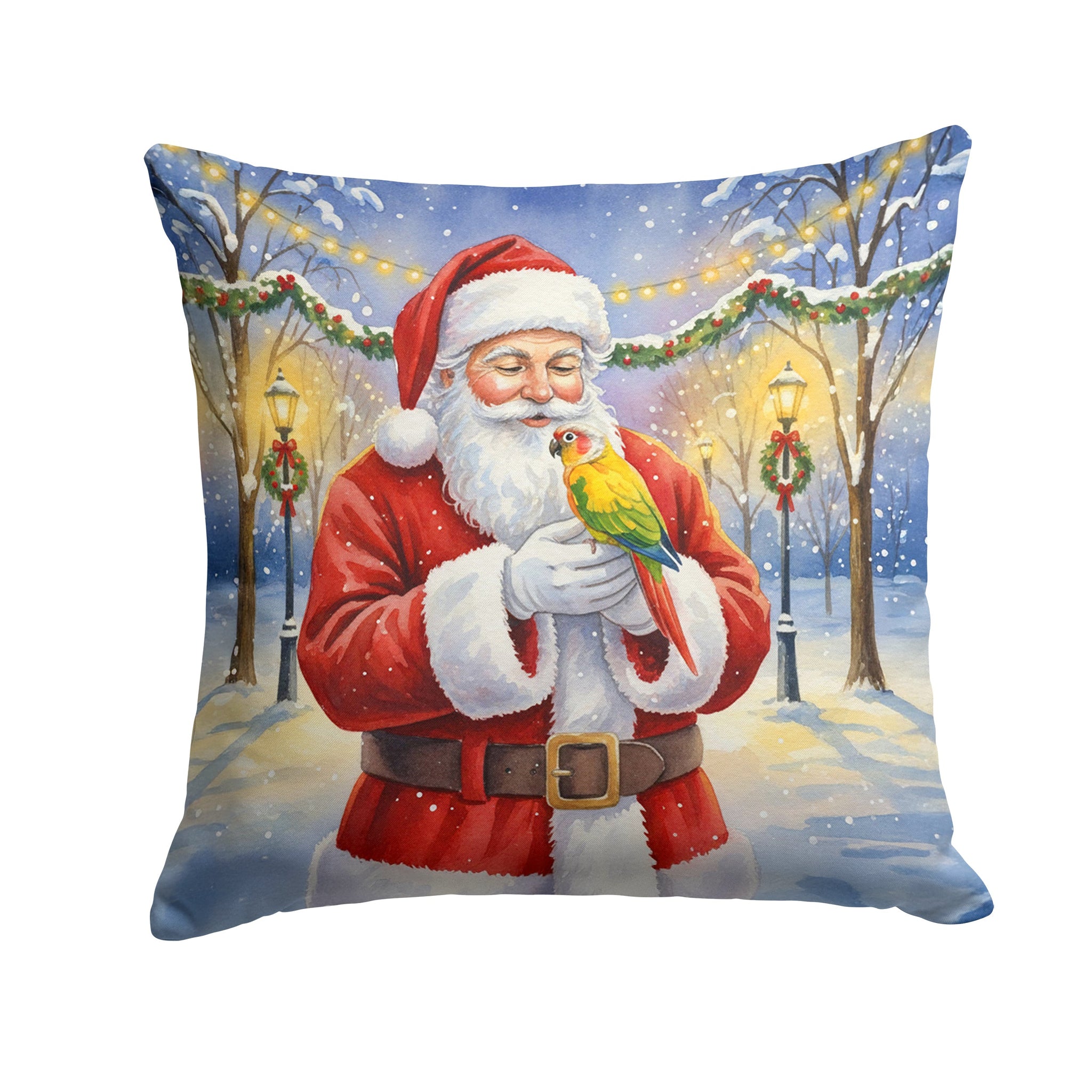 Throw Pillow featuring breed specific Green Cheeked Conure artwork. Celebrate Christmas with this Christmas Pillow. Revitalize your outdoor or indoor living space with Caroline's Treasures 18x18 Fabric Decorative Pillow. With a generously sized dimension of approximately 18 inches by 18 inches, this pillow makes a comfortable and aesthetic addition to any seating area. Made from a unique, water-resistant material developed by Caroline's Treasures, the pillow sham is 100% polyester fabric that's durable and ready to weather any condition. Its vibrant, full-color artwork will not fade over time as it is dyed with color-fast dyes. Whether you place it on your patio furniture, porch, veranda, or indoor couch, its soft canvas fabric ensures a cozy experience. The pillow is handcrafted in the United States, featuring a sham created from three pieces of fabric and a polyester insert for enduring shape and overstuffed comfort. Despite being robustly built to endure the outdoors, it is as soft and snug as your favorite indoor cushions. Please note, as all our pillows are handmade, sizes may vary slightly, adding to the charm of this unique decorative item.