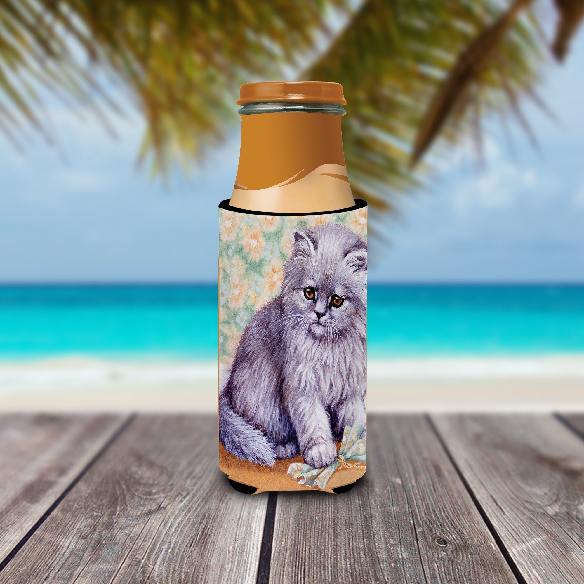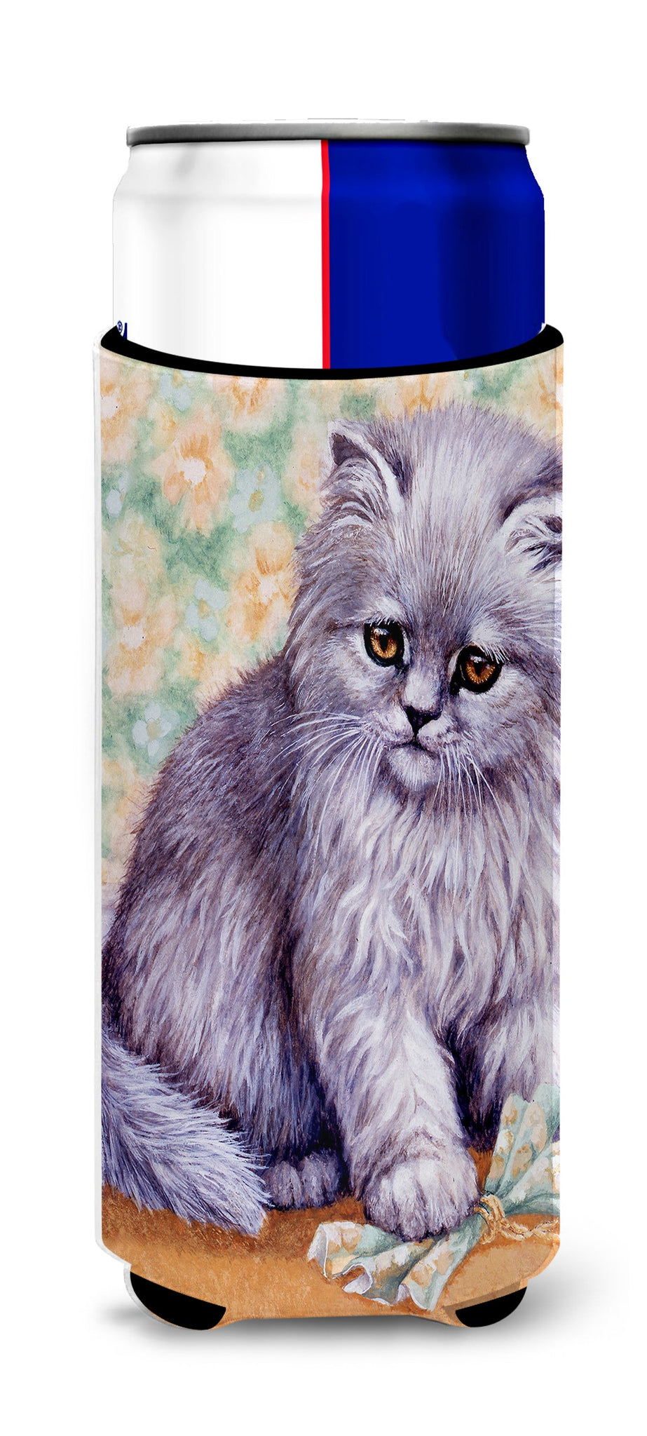 Decorate your space with our Cat artwork on a Slim Can Hugger. Elevate your beverage experience with our Slim Can Huggers, uniquely designed to fit a variety of your favorite 12 oz slim cans. Perfectly suited for Michelob Ultra, Starbucks Refreshers, Heineken Light, Bud Lite Lime, Dry Soda, Coors, Resin, Vitaminwater Energy, and Perrier Cans, our huggers ensure your drink stays refreshingly cool. The feature that sets our can huggers apart is the striking full-color artwork, exclusively created by one of our talented artists. It adds a touch of individuality and style to your drink, making it easier to identify in a crowd. A unique blend of practicality and flair, these huggers are an absolute must-have at any gathering. Our can huggers are not just beautiful but also incredibly durable. The design won't fade or peel off, and they can be safely cleaned in a washing machine. These collapsible beverage insulators are easy to store and transport, making them perfect for all occasions. Enjoy your drinks in style and comfort with our exceptional Slim Can Huggers.