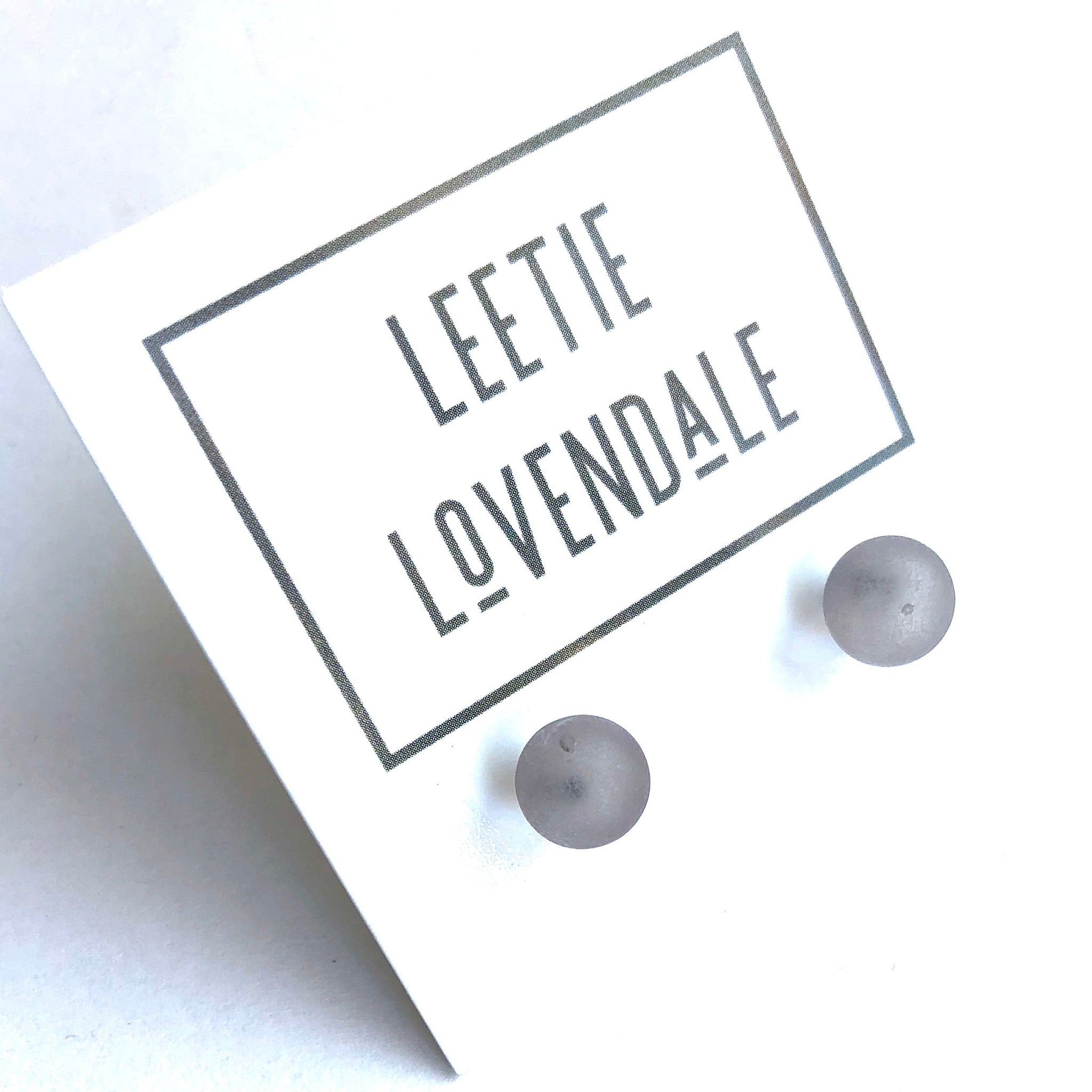 Light grey frosted studs for your ears. Each bead or post earrings measures approximately 7-8mm in diameter - a great classic size that will put that retro touch on your look and in a frosted finish.