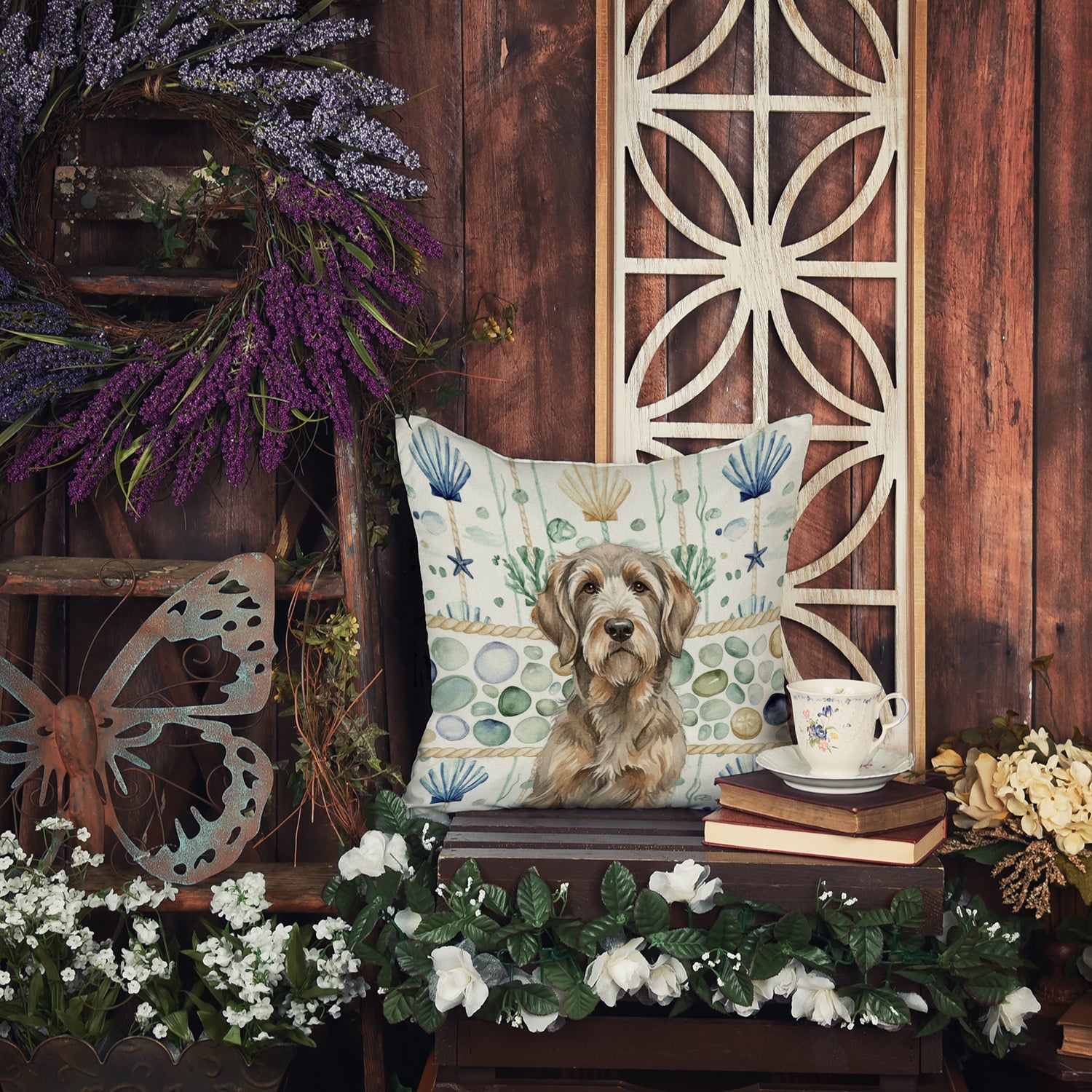 Throw Pillow featuring breed specific Otterhound artwork. Add a touch of vibrancy and comfort to your outdoor seating with Caroline's Treasures Fabric Decorative Pillow. Measuring approximately 14 inches by 14 inches, this outdoor pillow is crafted to elevate the appeal of your patio furniture, infusing it with vivid color and artistic flair. The pillow includes a 100% Polyester Fabric sham filled with a quality pillow form to provide superior comfort. Innovatively made from our brand new material, specifically woven for its water resistance, this pillow is designed for durability. The soft canvas fabric offers versatility in use, fit for your indoor couch or your outdoor patio, porch, or veranda. The fabric is dyed with colorfast dyes built for resilience against weather conditions, ensuring the pillow retains its beauty over time. Constructed by sewing three fabric pieces to create a sham, the polyester insert is then nestled inside to form the pillow, resulting in an overstuffed pillow that maintains its shape. Both the sham and the pillow insert are proudly made in the United States. As the pillows are handcrafted, there may be minor variations in size, further enhancing their unique charm. Experience comfort in style with Caroline's Treasures Fabric Decorative Pillow.