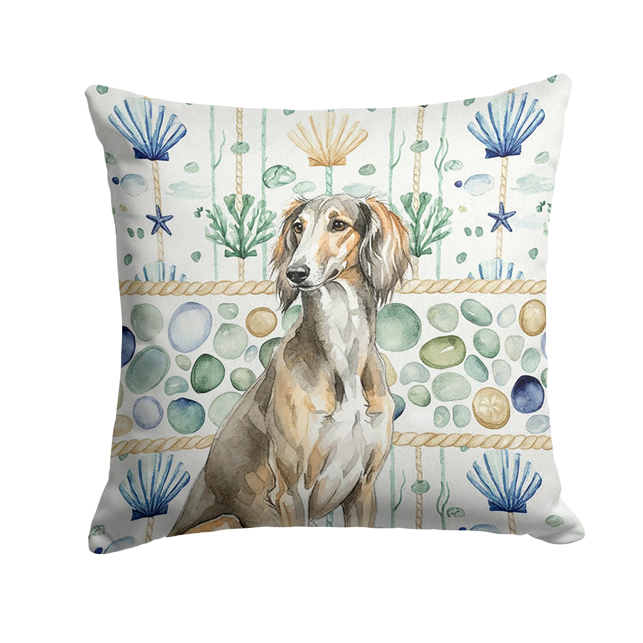 Grizzle Saluki Coastal Sea Glass Throw Pillow