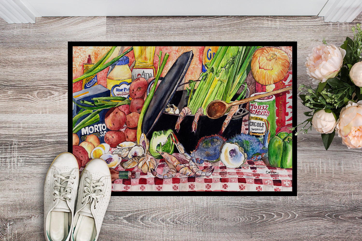 Gumbo and Potato Salad  Doormat - 24x36 Decorative Floor Mat – Indoor/Outdoor Rug
