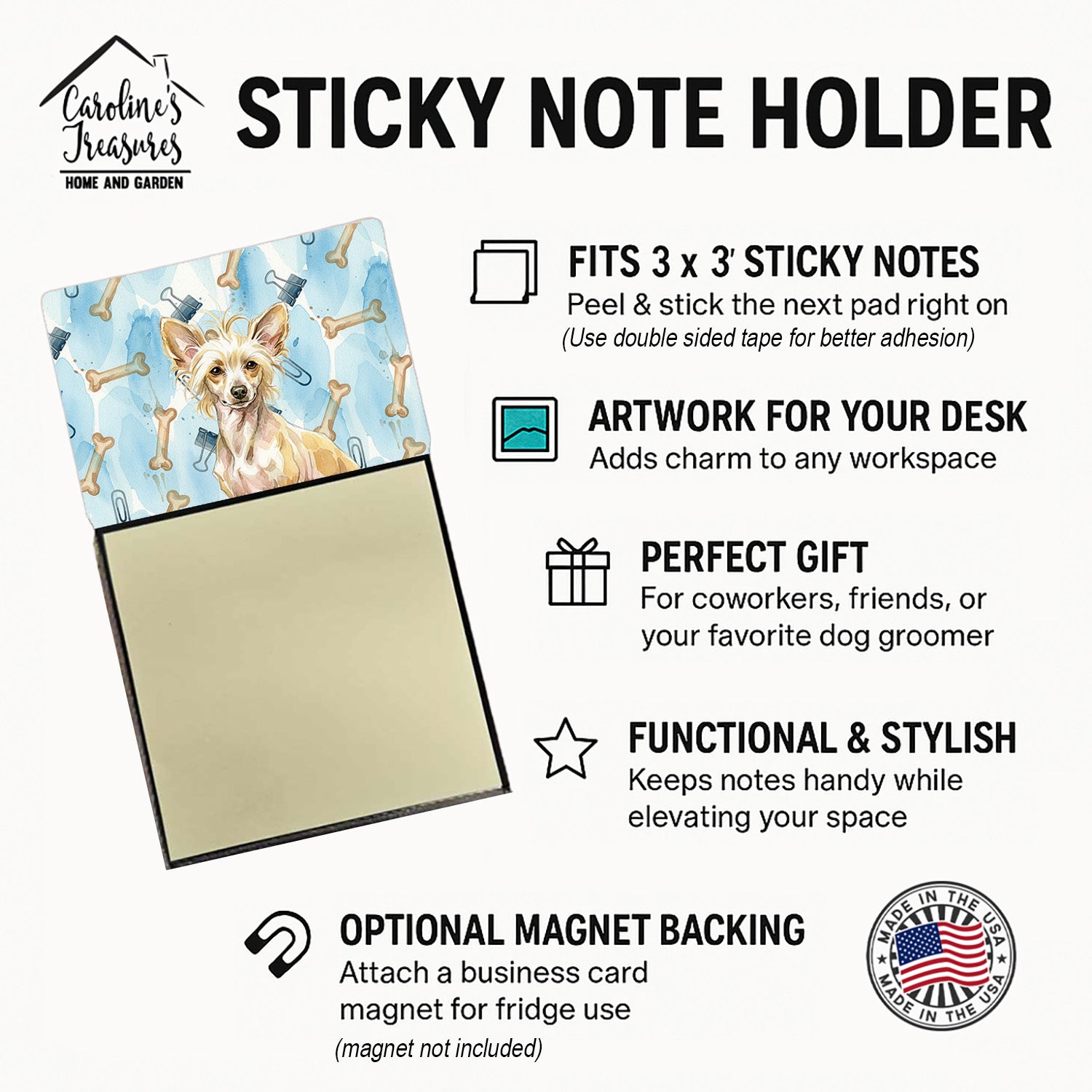 Hairless Palomino Chinese Crested Coworker Watercolor Sticky Note Holder